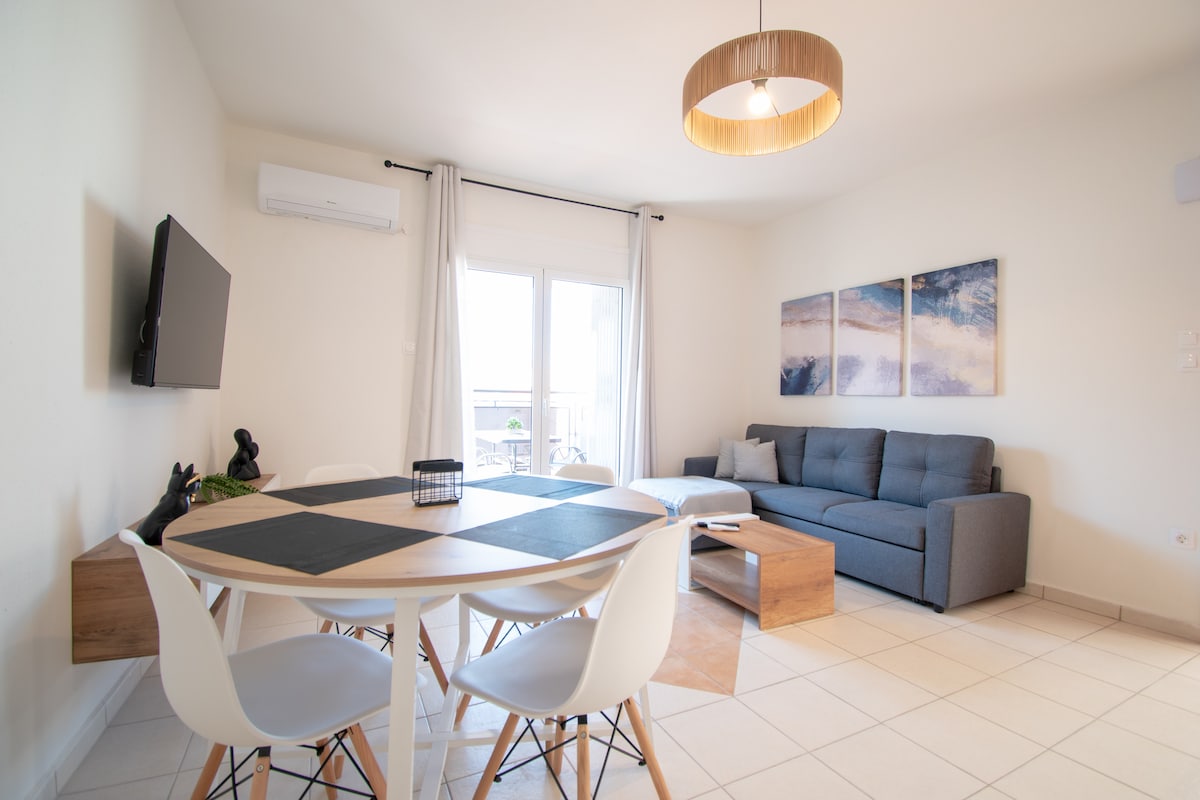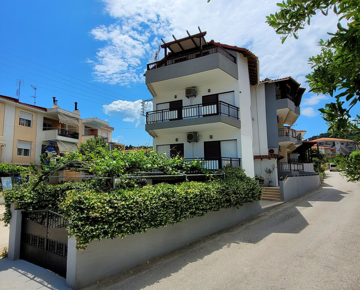 Un apartamento elegante, recientemente renovado y totalmente equipado, diseñado para satisfacer a todos los visitantes, en Kassandra, Calcídica. Se encuentra junto al centro de Polychronos, en un barrio tranquilo y a poca distancia de la hermosa playa del pueblo. Base ideal para explorar Calcídica, tanto sus maravillosas playas como sus pueblos de montaña, a poca distancia de los baños termales de Agia Paraskevi y un lugar con fácil aparcamiento.