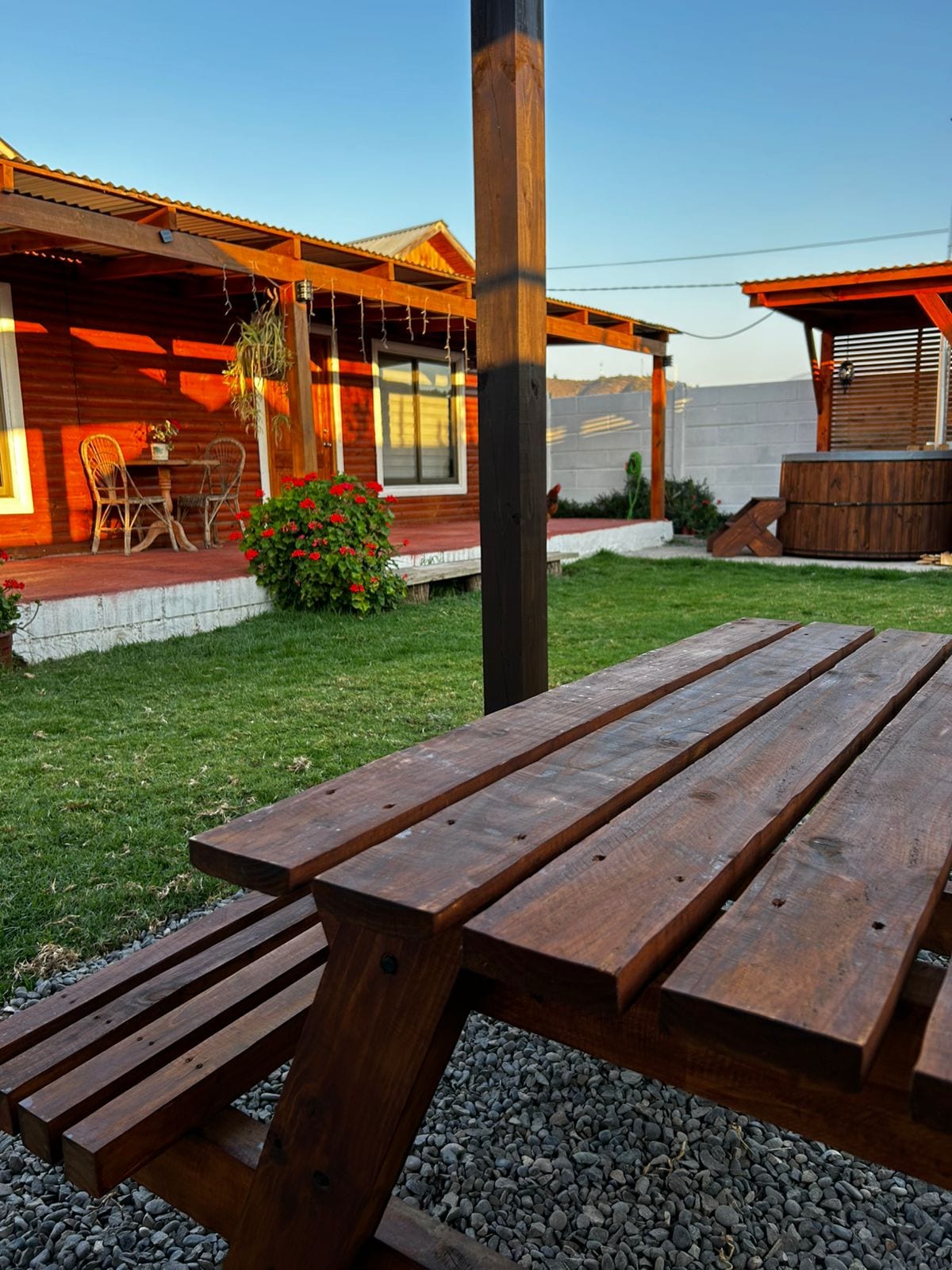 Bienvenido a nuestro Lodge en la naturaleza, un refugio en la precordillera, perfecto para escapar de la rutina. Despiértate con aire fresco y el canto de aves, disfruta de viñedos cercanos. Relájate en la piscina con una hermosa vista. Disfruta de una experiencia única sumergiéndote en una tinaja de agua caliente bajo el cielo estrellado (valor adicional) Entorno natural ideal para meditar en la pirámide y experimentar el bienestar de nuestra cama de cuarzo. Descubre la tranquilidad y paz.