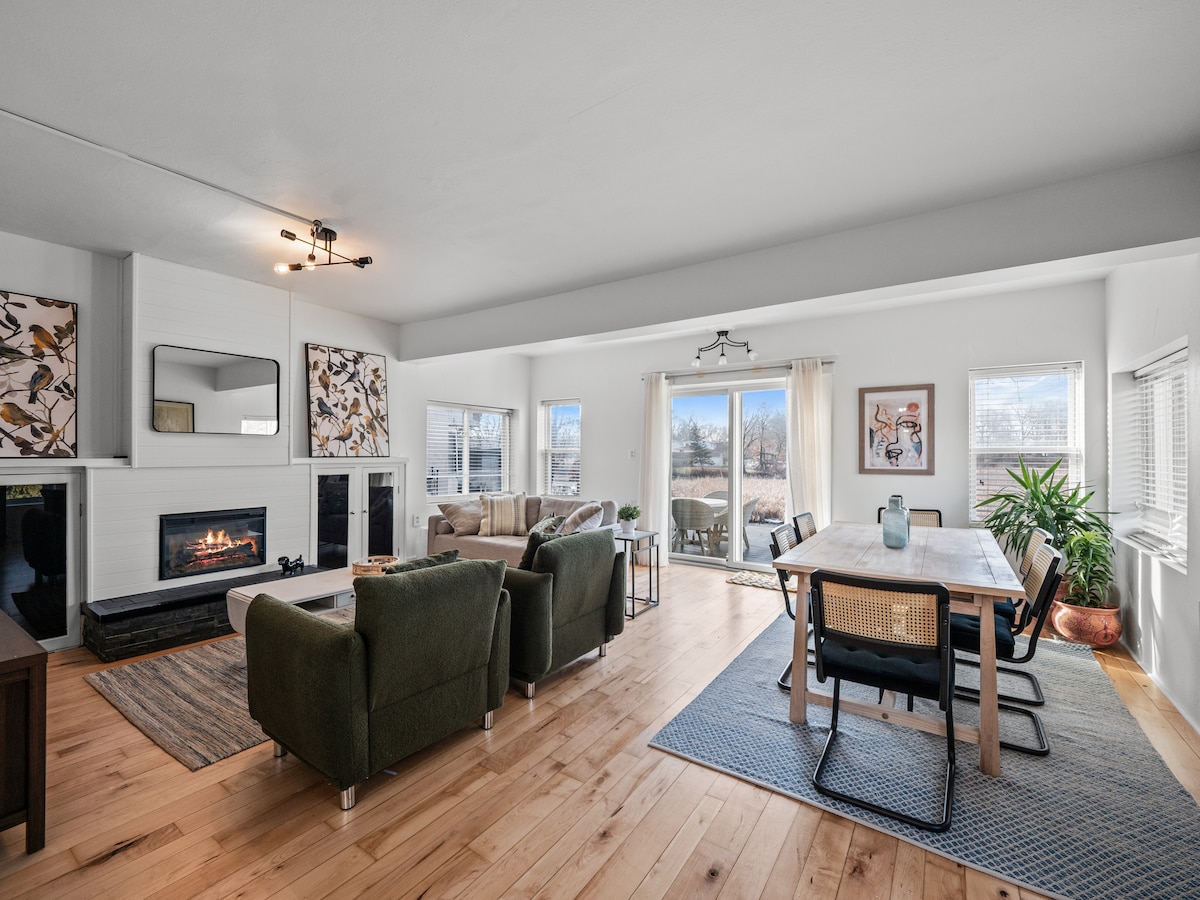 ¡Da la bienvenida a nuestro vibrante bungalow en el lago iluminado por el sol con playa y acceso por el muelle al lago Pontiac todo el deporte! Este espacioso y acogedor hogar está impregnado de las sensibilidades artísticas de nuestro hogar nativo de Vietnam. Pasa tus días de ocio nadando, haciendo kayak, pescando o simplemente vadeando en las aguas poco profundas. O puedes disfrutar de la salida del sol sobre el lago desde detrás de las grandes ventanas de la cocina. A pocos minutos se encuentran Alpine Valley Ski y las increíbles rutas de senderismo/bicicleta de la zona recreativa del lago Pontiac.