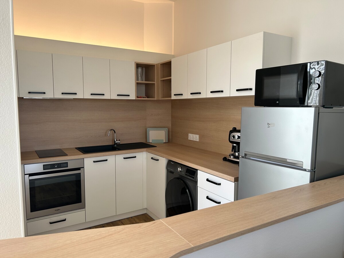 Bonito estudio reciente cerca del mar, golf con jardín
