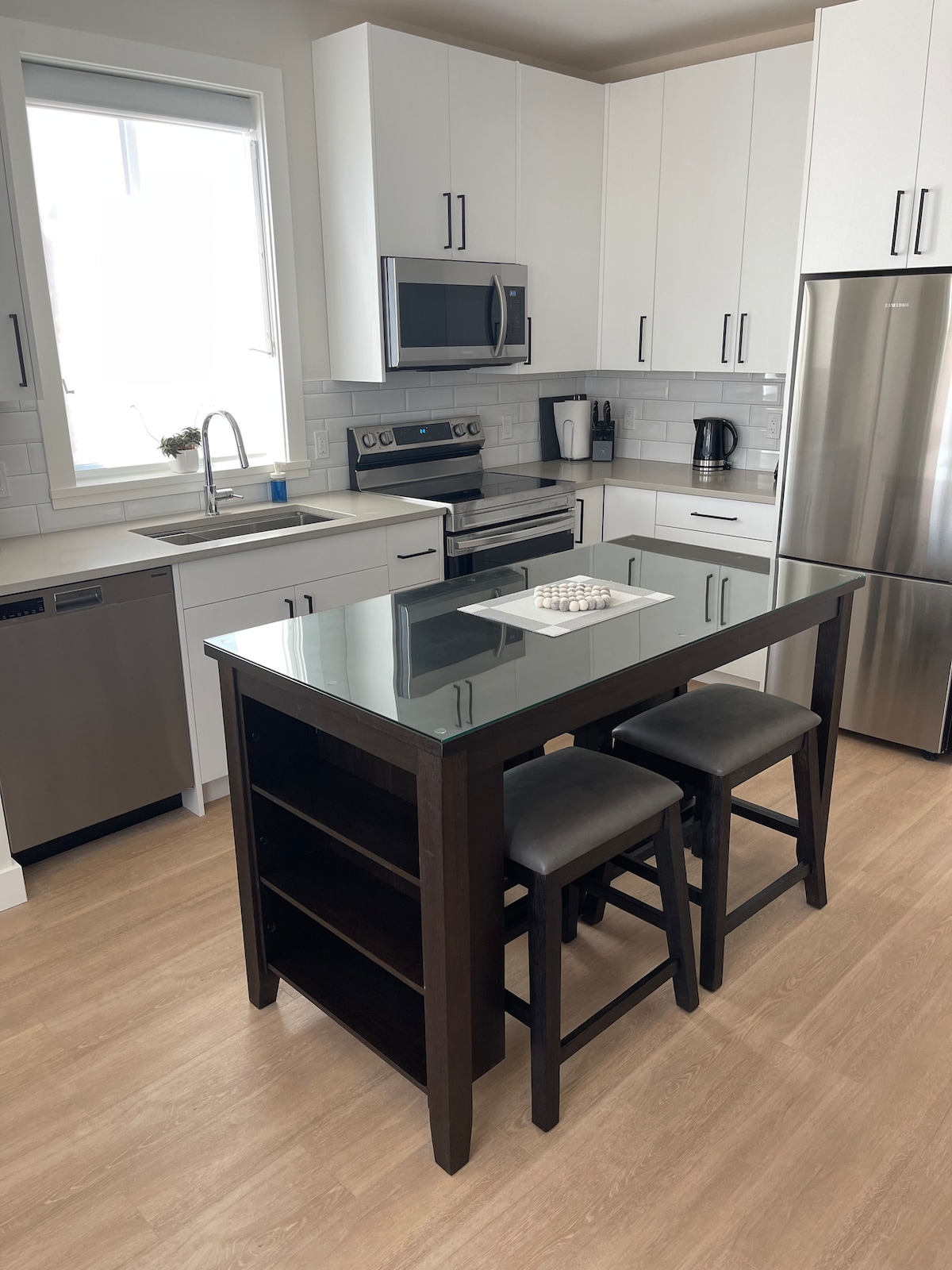 Nuestra suite es un impresionante refugio de un dormitorio recién construido, con un techo de 9' y un generoso espacio de 810 pies cuadrados. Cuenta con un televisor inteligente de 58 pulgadas y una cocina totalmente equipada, lo que garantiza un estilo de vida de alta calidad durante tus viajes. Disfruta del impresionante amanecer y atardecer desde tu balcón privado, con una magnífica vista al mar y las montañas a través del estrecho de Georgia. Convenientemente ubicada, nuestra suite es una base ideal para descubrir el encanto de la isla de Vancouver.