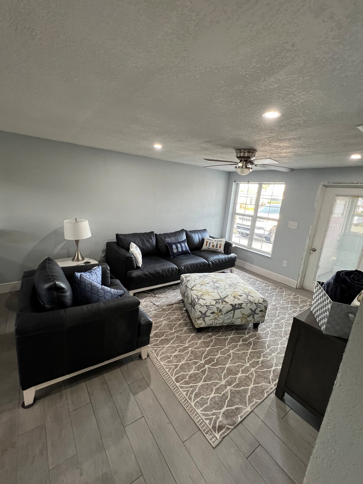 En este alojamiento se respira tranquilidad: ¡relájate con toda la familia! Esta casa está a poca distancia a pie de la playa, Publix, restaurantes locales y Dunkin' Donuts. Tendrás mucho espacio al aire libre y asientos para disfrutar del hermoso clima, junto con muebles modernos y una decoración de buen gusto dentro de la casa. Este es un alojamiento de 2 dormitorios y 1 baño completamente renovado que puede alojar cómodamente al menos a 6 personas. Ofrecemos televisores inteligentes de pantalla plana en todas las habitaciones, junto con una cocina moderna; Keurig incluido.