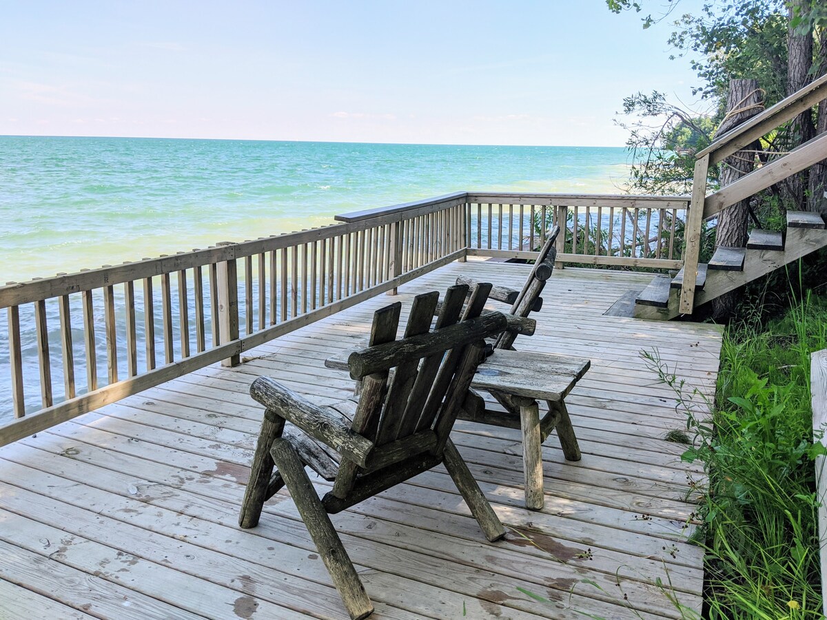 Casa pequeña en el hermoso lago Hurón, a solo 2 millas al sur de la pintoresca ciudad de Lexington, Michigan. Esta propiedad se encuentra en un acantilado con vistas al lago Hurón, que ofrece a nuestros huéspedes vistas despejadas a los cargueros que pasan y a los impresionantes amaneceres. La propiedad se encuentra en un terreno de 1/2 acre al final de una calle tranquila con su propia playa privada rodeada de bosques a un lado. Esta cálida y acogedora casa pequeña tiene un gran patio con mucha vida al aire libre cubierta.