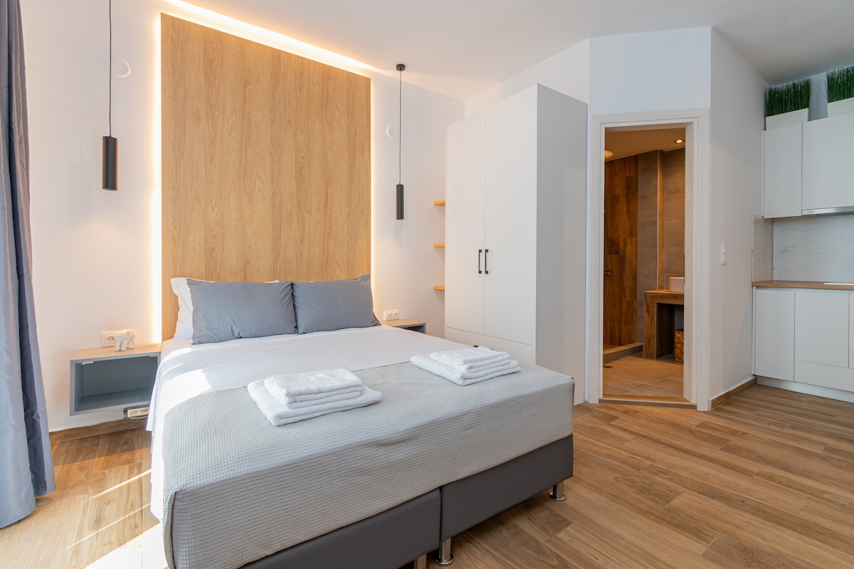 Desarrollo completamente nuevo a partir de julio de 2025 Experimenta el lujo refinado en esta suite dúplex de diseño inteligente, perfecta para un máximo de cuatro adultos. La planta baja cuenta con una sofisticada sala de estar con un sofá cama doble (1,6 x 2 m), una cocina totalmente equipada y un baño elegante. Una elegante escalera conduce al piso superior, donde te esperan un espacioso dormitorio principal, un elegante baño y un balcón privado. Sal a un espacio privado al aire libre de 55 m² con una impresionante piscina privada