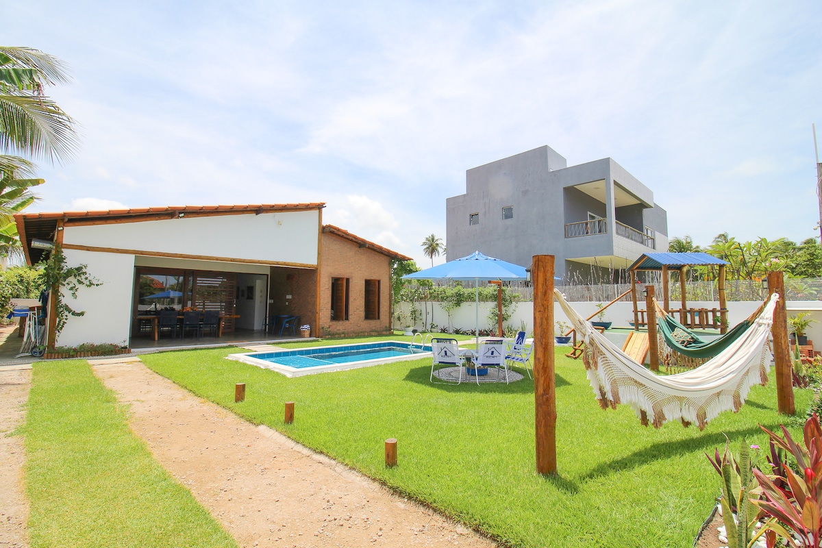 A Casa do Sino Patacho é ampla e aconchegante, com espaços bem iluminados e ventilados. Contém 04 quartos, sendo 01 suíte máster, 02 suítes reversíveis e 01 quarto. Ampla cozinha integrada a Sala de Jantar. Sua área externa é o diferencial, com piscina, chuveirão, redário, terraço gourmet, quadra gramada e um lindo jardim. Disponibilizamos cadeiras de praia e caixa térmica. E tudo isso localizado a 300m da famosa Praia do Patacho-AL.