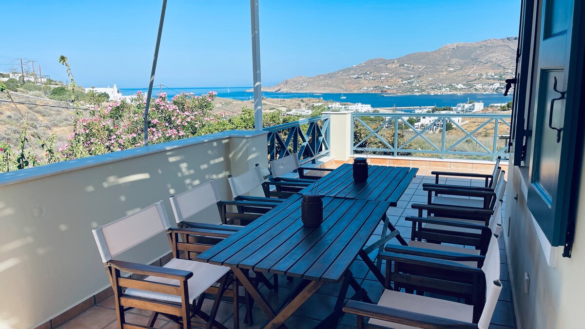 Disfruta de la experiencia única que te ofrece la ubicación de esta casa de verano, justo delante de la playa, relájate en el gran porche con vistas al mar y nada en el claro mar Egeo. La casa está situada en el sur de la isla, desde donde puedes comenzar tus excursiones, ya sea en coche o en transporte público. Hay una parada de autobús cerca de la casa y conexión entre Hermoupolis (la ciudad capital), el puerto y otros pueblos y playas. ¡Siéntete como en casa y disfruta de tu estancia en mi alojamiento!