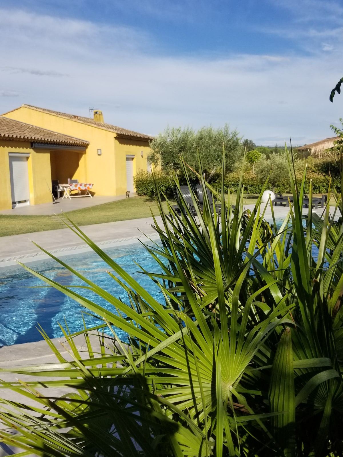 Maison située sur notre propriété de 6000m2 sur les hauteurs de Trets. Nous habitons sur place mais la terrasse et une partie du jardin est privative et sans vis-à-vis. Environnement très calme et dans la verdure. Dans le jardin, il y a en accès partagé terrains de sport et jeux (pétanque, basket, foot, tyrolienne 25m, trampoline,balançoire, château, crossfit) Wifi par la fibre. Accès à la piscine chauffée sur réservation (50€/demi-journée : 8h/12h ou 14h/18h) Fête interdite