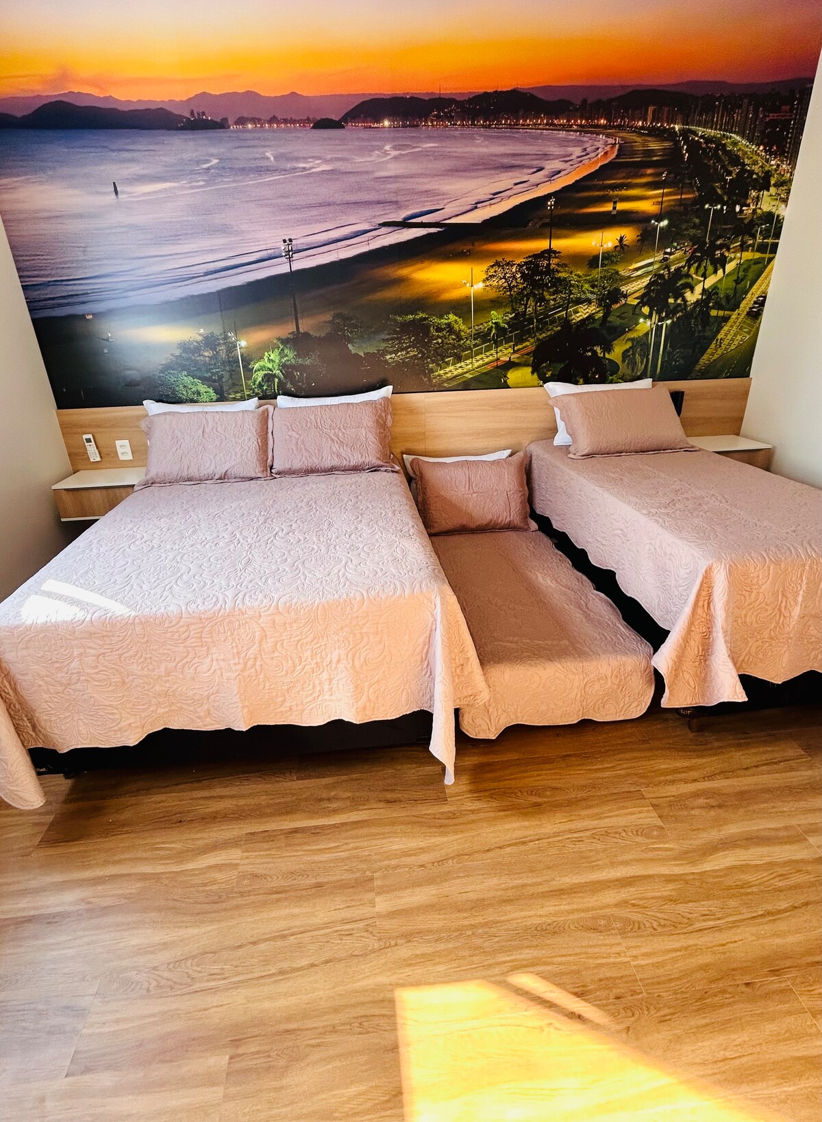 Apartamento completo en Gonzaga, Santos 🌊 a pocos pasos de la playa, último piso, con una vista lateral privilegiada al mar. Perfecto para una pareja o familia, con cama tamaño queen🛏️, sofá cama doble, aire acondicionado❄️, TV inteligente📺, Wi-Fi, minibar, microondas y cafetera☕. Baño con ducha caliente y gran presión🚿. Edificio con piscina🏊, gimnasio💪, sauna y minimercado🛒. Ubicación privilegiada cerca del paseo marítimo, restaurantes y tiendas. Comodidad y practicidad en el mejor Airbnb en Santos.