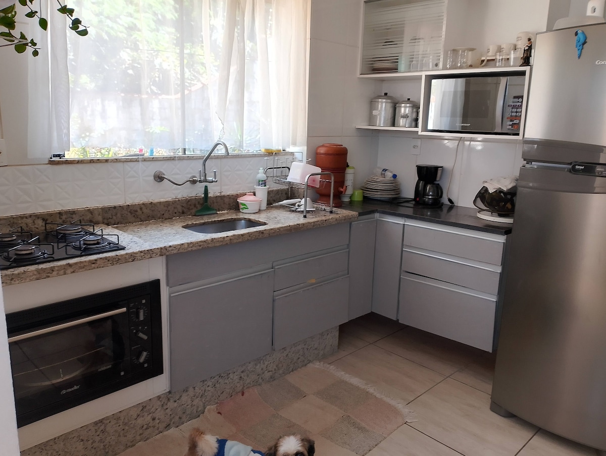 Relaxe com toda a família nesta acomodação tranquila. Valor para 3 pessoas , localizada em bairro tranquilo . Prox a pizzaria, supermercados , farmácia , posto de gasolina . Monitoramento 24 horas externo com câmera de segurança , conta com 2 quartos, uma sala de estar, uma cozinha completa toda equipada com utensílios , cafeteira e geladeira, além de banheiro com chuveiro e secador de cabelo. Oferecemos toalhas e roupa de cama. Ambiente Famíliar Reservas somente pela plataforma.