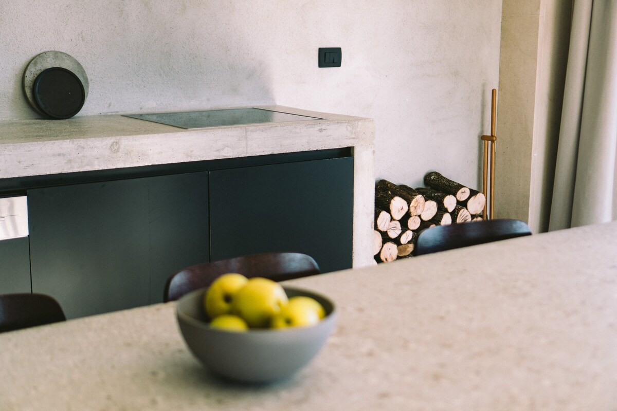 La combinación de la luz, los materiales naturales y un par de esculturas históricas de más de 300 años de antigüedad hacen una unión perfecta. La terraza ofrece unas vistas magníficas de la isla y del mar Adriático. En este apartamento pueden hospedarse hasta cuatro personas.