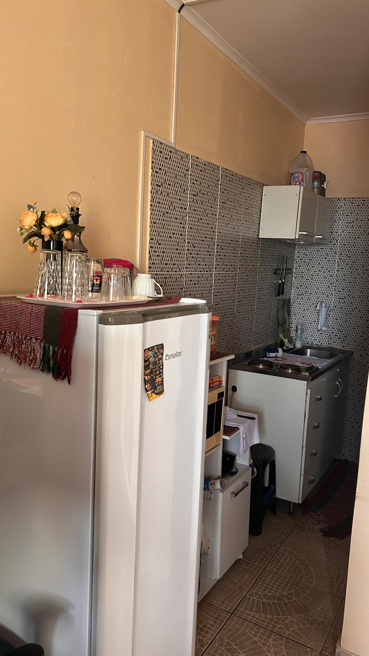 Apartamento en condominio seguro. El lugar está bien ubicado, cerca del Palacio Rio Negro en el centro de Manaos. El lugar es acogedor, limpio y seguro, ya que cuenta con una caseta de vigilancia. El espacio está en el tercer piso (subir escaleras) tiene capacidad para dos personas para una cama queen, sofá cama y espacio para una hamaca. El apartamento es totalmente “suyo” NO es compartido.
