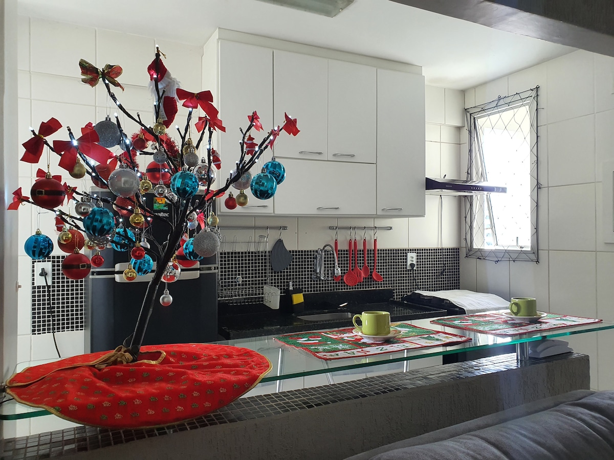 Apartamento en el piso 14, finamente decorado y muy bien equipado para su comodidad; Habitación con aire acondicionado, Smart TV, ropa de cama y baño completos; Comodidad de mercado, panadería y farmacia en la planta baja del edificio; Una plaza de aparcamiento cubierta en el edificio, conserjería 24 horas; Balcón con hamaca, espacio para cerveza y sillones para admirar la vista; Cocina completa con zona de café; Wifi 360mb.