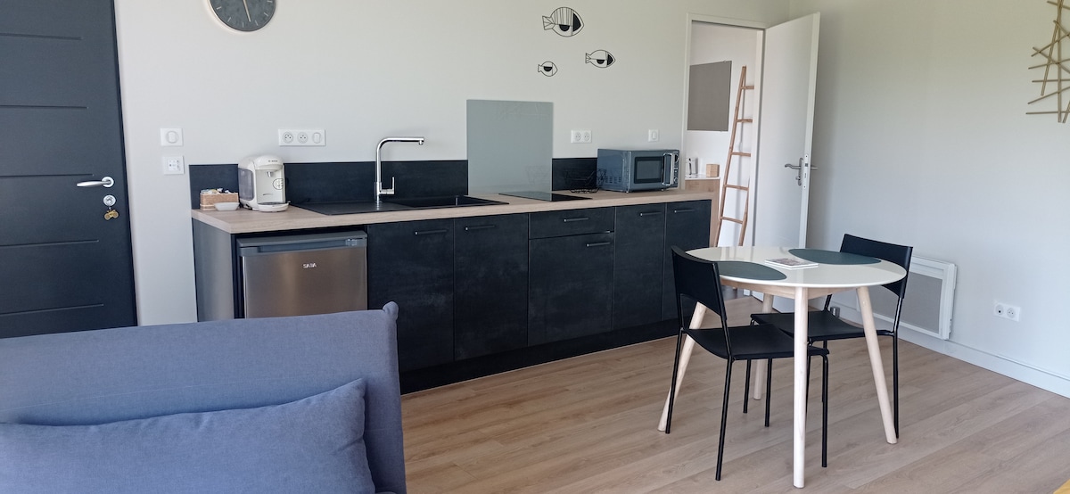 Relájese en este encantador estudio de 30 m2, anexo a nuestra casa con entrada independiente, situado en una zona muy tranquila y que le ofrece una magnífica vista, a 5 minutos de todos los comercios y a 10 minutos del centro de la ciudad de Cahors. Bonita sala de estar con una cama, una cocina equipada y un baño con inodoro. Tendrá acceso a nuestra piscina(nos aseguramos de utilizar la piscina solo en ausencia de nuestros huéspedes)y también podrá disfrutar de una terraza cubierta y del jardín.