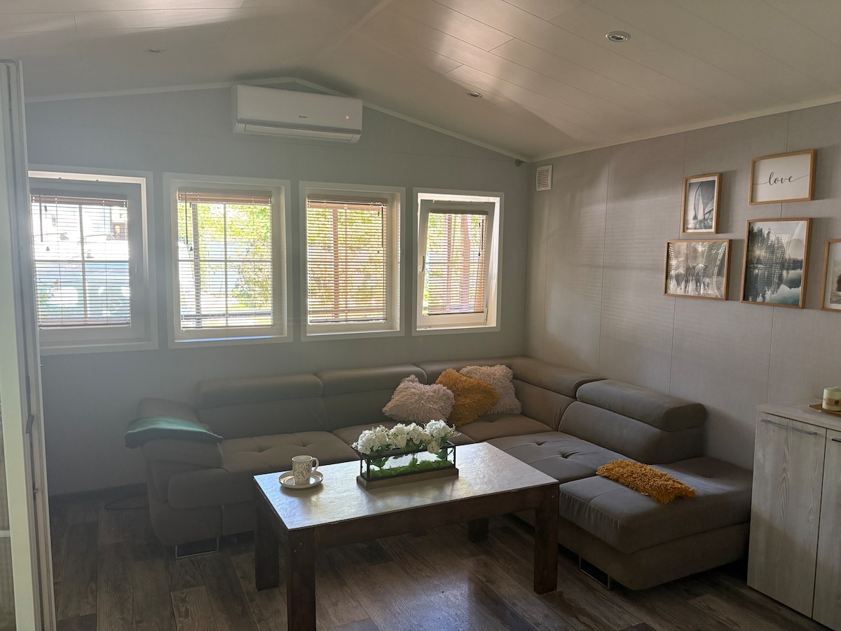 The modern and newly finished 2-room apartment with a park view is located on the 2nd floor of a new residential building with an elevator on Piltza Str. Situated in a quiet neighborhood surrounded by greenery. The apartment is fully equipped with household appliances and other devices. The excellent modern design and numerous storage furniture make the apartment functional and ideal for a longer stay. The harmonious, calm color scheme of the interior makes the apartment both elegant and cozy.