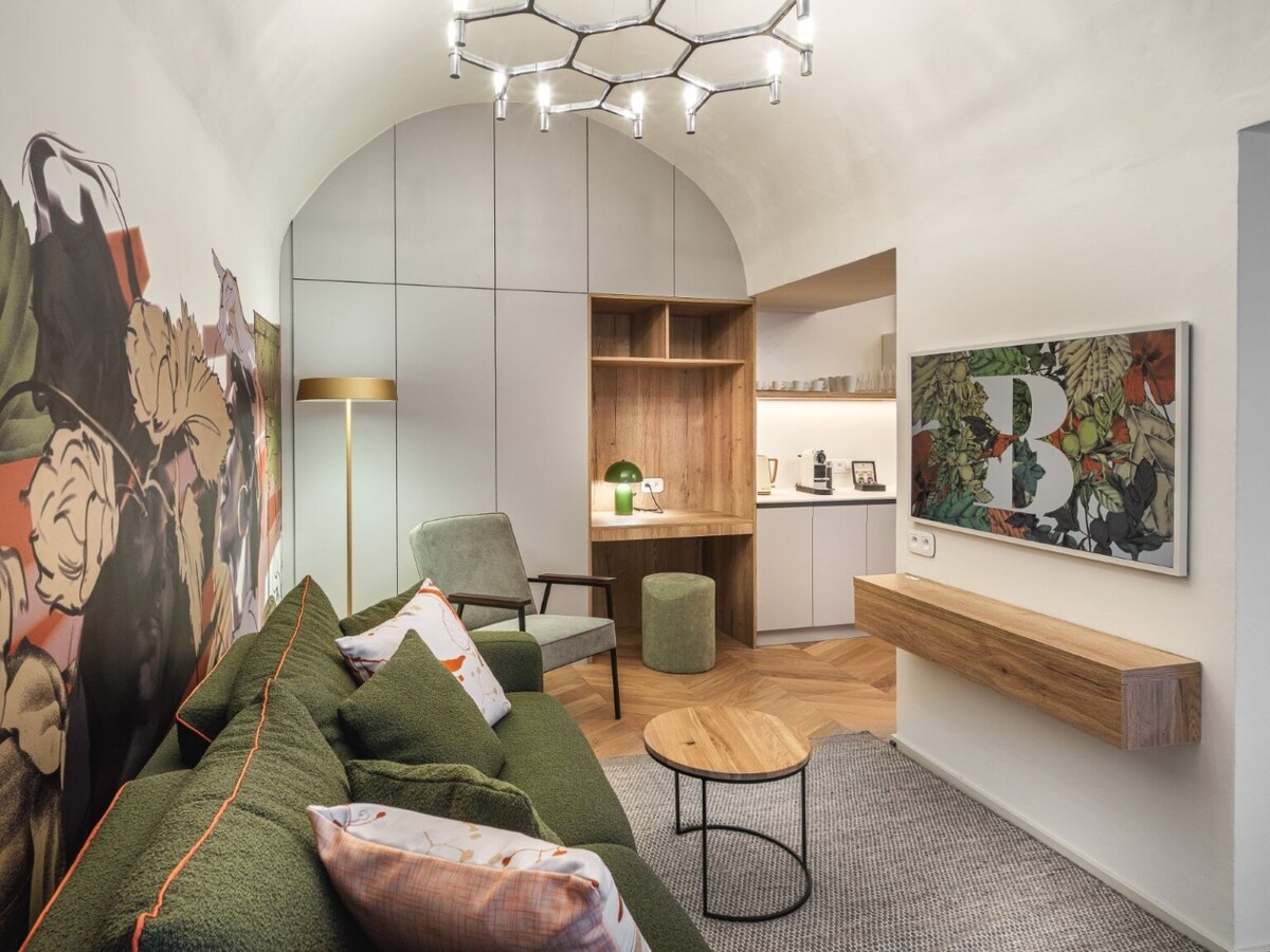 Modern, newly renovated apartment in the heart of Prague 1, just a 5-minute walk from the iconic Dancing House and the popular Náplavka riverside. Thanks to its excellent location, it is an ideal base for exploring Prague and its most famous landmarks. In the surrounding area, you will find a wide selection of restaurants, bars, cafés, shops, and traditional pubs, as well as popular tourist attractions, including Wenceslas Square.