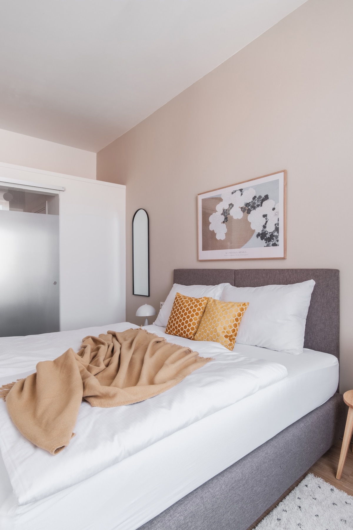 Your perfect place to stay in Prague for one or two people. From the minute you walk into our classic building built in 1982, the history is almost palatable. Refurbished with all the luxuries of modern life. From a fully stocked kitchen to the luscious hot towel warmers will make you feel right at home. We know the importance of a great night's sleep. Enjoy our comfortable orthopedic beds and pillows. See you soon.