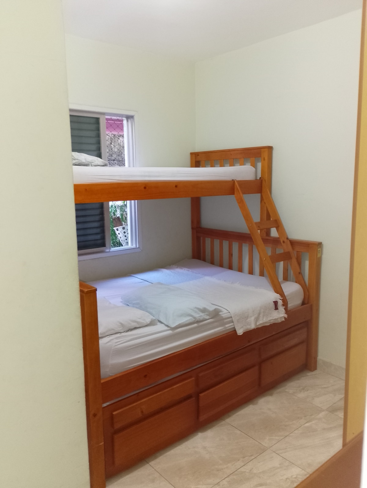 Ambiente familiar em uma área tranquila no Guarujá acomodação para 6 pessoas área de lazer, esnuk, pebolim , churrasqueira uma linda piscina de 6 metros 1 quarto com cama casal e uma Beliche, bicama ,rede ,cozinha completa , ventiladores nos dois comodos ar condicionado , 1 banheiro inteiro dentro da casa e um lavabo na área externa da casa.