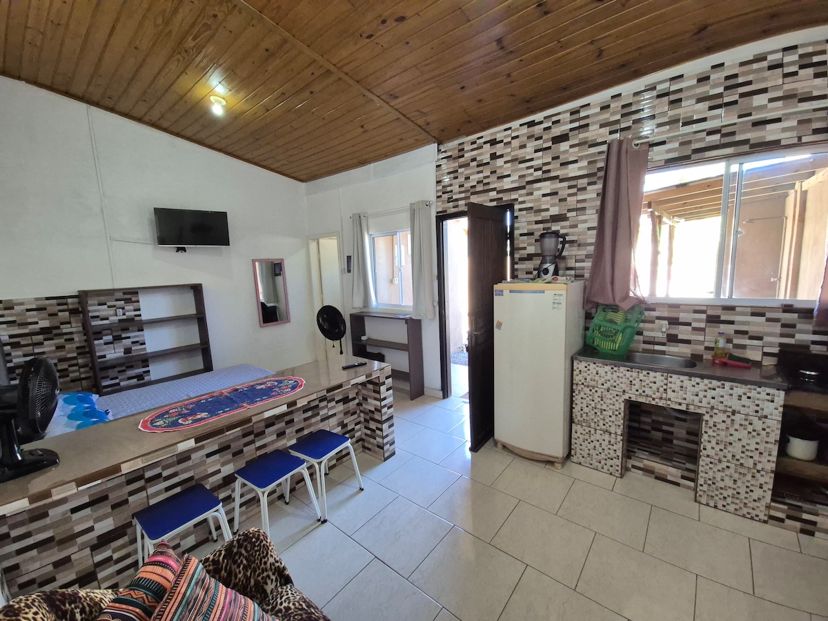 El Espacio Chapéu de Palha Tainha fue hecho para usted mochilero que le gusta viajar, pero con poco dinero. Es más cómodo que un albergue y más barato que una posada. Tendrás a tu disposición una habitación con cama doble, baño privado y una cocina exterior en el balcón donde podrás hacer tu comida y barbacoa, ahorrando así en restaurantes, equipada con fregadero, cocina, horno eléctrico y minibar, parrilla y todo privado. Proporcionamos almohada, sábana, internet.