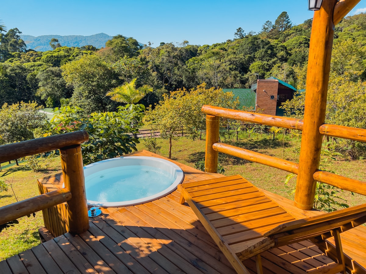 Chalé com Duas banheiras. Lareira e churrasqueira