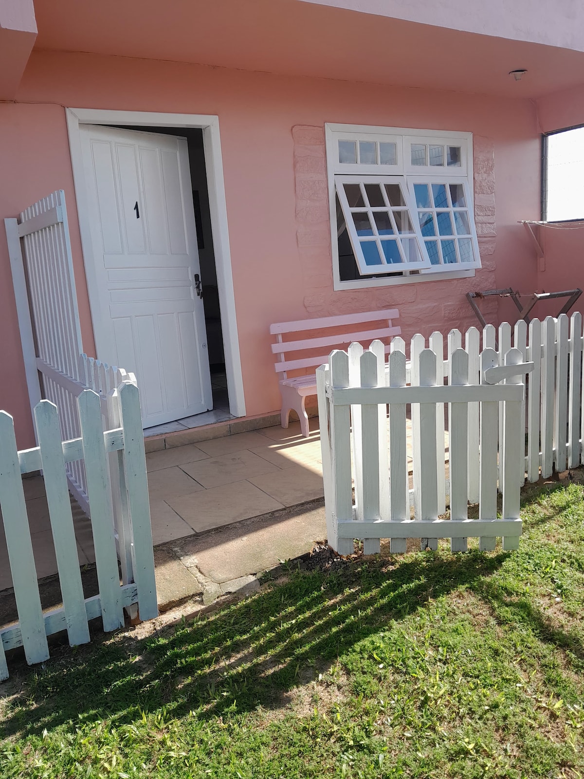 De nada :) ¡Olvídate de tus preocupaciones en este lugar espacioso y tranquilo! Hermosa casa adosada con 2 suites, sala de estar , cocina, dos baños y lavada debajo. Patio cerrado con espacio para dos autos, patio trasero y una bonita barbacoa. La casa está situada en el centro de la playa de Tramandaí, a 10 manzanas del mar. Tiene dos dormitorios, ambos con una cama doble y una cama individual adicional en cada dormitorio. Ambas habitaciones tienen ventiladores. En la cocina, microondas y utensilios para mayor facilidad ;)
