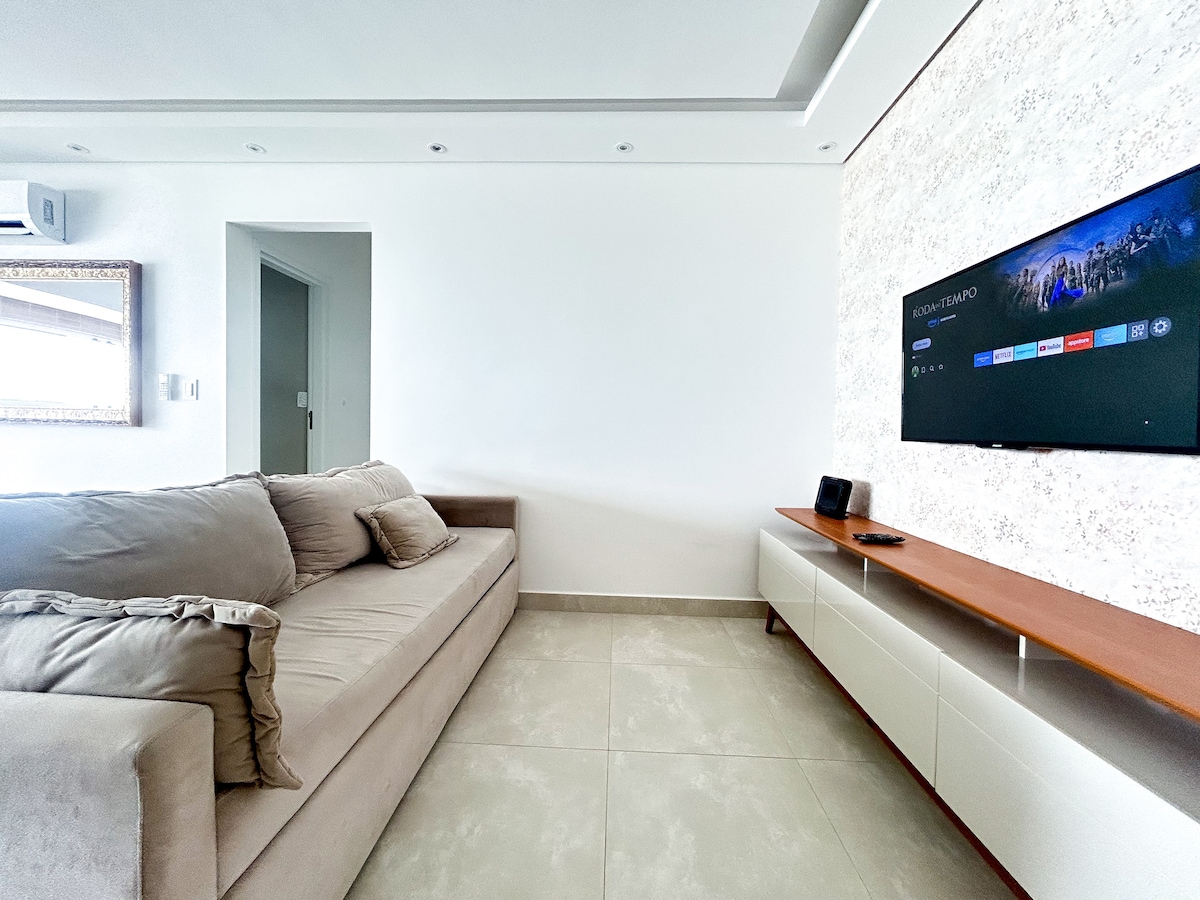¡Un lugar para crear recuerdos! Haz el check-in a las 8:00 a. m., disfruta de un café en un enorme balcón gourmet de 12 m² con hermosas vistas al mar. el enorme balcón gourmet ofrece una increíble experiencia de vista al mar en compañía de familiares y amigos 🍻 ¡Tenemos 100 % 5 estrellas en atención! Disfruta de la playa por la mañana, brinda por el atardecer mientras esperas que llegue la noche para disfrutar de la encantadora Feria de Artesanía, rodeada de bares y heladerías que hacen de Vila Caiçara el corazón palpitante de Praia Grande.