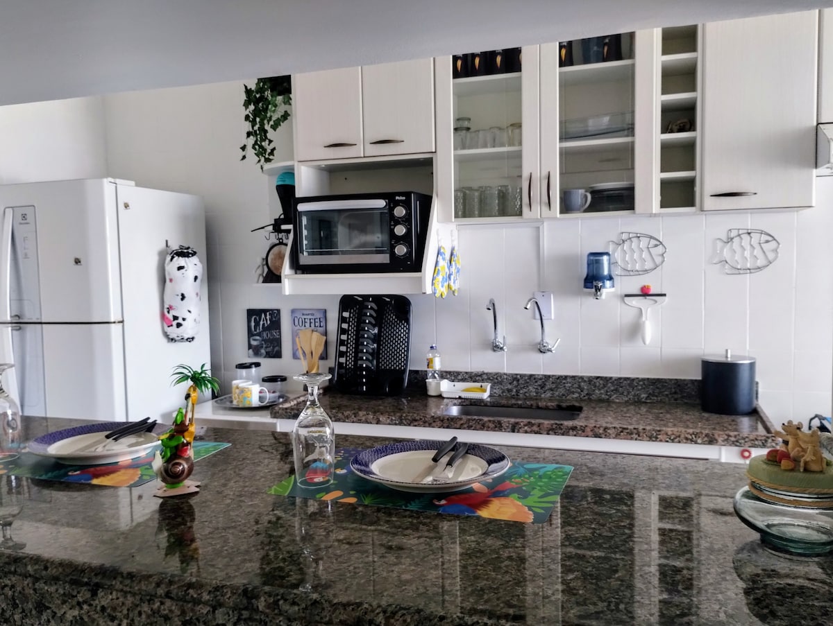 Dormir con el sonido del mar y despertar con un amanecer impresionante, ¡estos son algunos de los placeres que ofrece este encantador apartamento frente al mar! Fácil acceso, conserjería 24 horas, estacionamiento privado, el apartamento también cuenta con aire acondicionado, wi-fi, cocina completa, cerradura electrónica y balcón con parrilla. Diseñado para ofrecer el máximo confort, tiene capacidad para cuatro adultos. Siempre estamos preparados para recibir parejas, familias y grupos de amigos.
