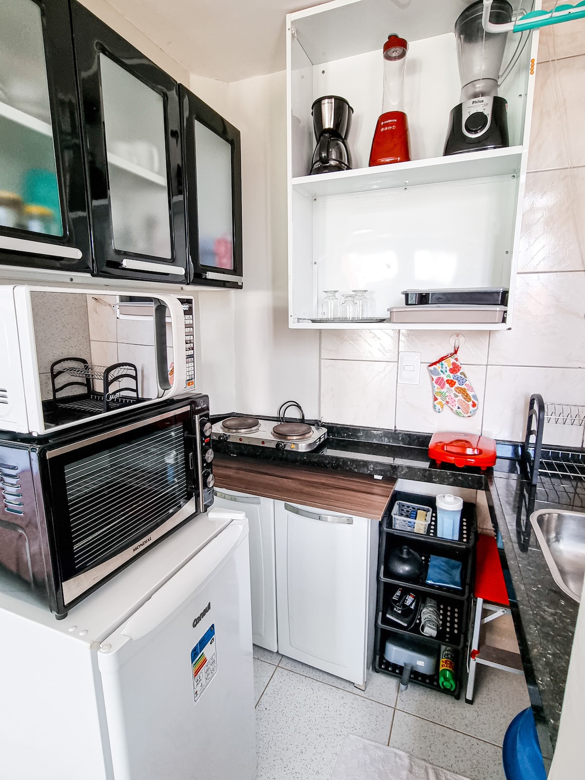 Apartamento completo y equipado, sala de estar, cocina, refrigerador, estufa de 4 quemadores, cafetera, tostadora, licuadora, dispensador de agua de 20 litros, todos los utensilios de cocina, plancha, secador de pelo, mesa con 4 sillas, televisión por cable y aire acondicionado en la sala de estar y dormitorios, 2 baños, 1 en suite y otro baño adjunto a la sala de estar, sofá cama, sillón, dos balcones, lavadora delantera y lateral (bien ventilada), fregadero y gabinete, silla y mesa pequeña en el balcón y hamaca, freidora de aire, balcones en el protector de pantalla.