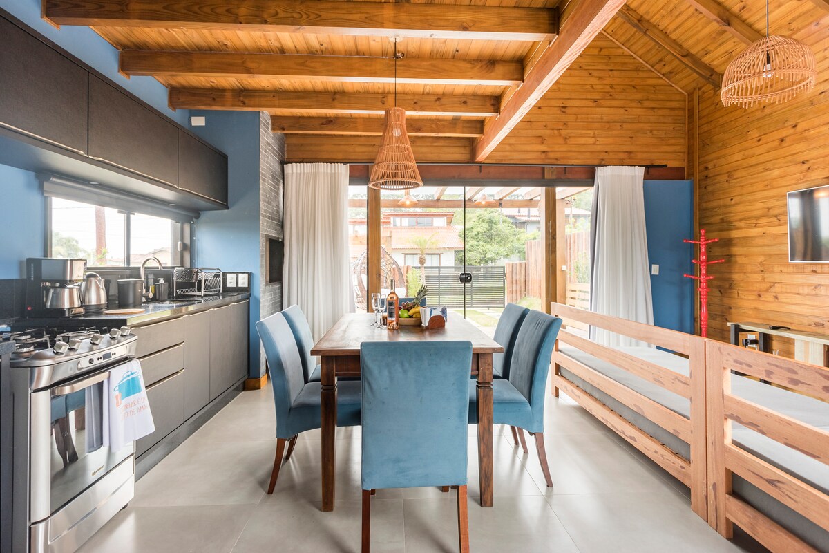 Nuestro espacio está diseñado para nuestros huéspedes. Disponemos de un espacio de 1500 m², ubicación segura, casa completa y equipada, mesa de billar, piscina climatizada, zona de hidromasaje, acceso a la laguna privada, tabla de standup paddle, kayak, etc. Nuestra ubicación es privilegiada por su belleza natural, estamos ubicados a unos 2 km de Praia do Rosa, pero además de esta hermosa playa, hay otras hermosas playas también en la región, como Praia do Ouvidor, Praia da Barra de Ibiraquera, Praia do Luz, etc.