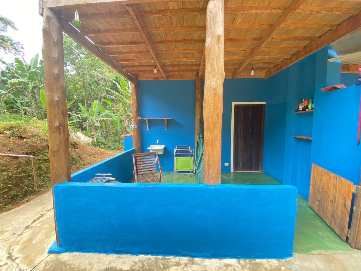 Dúplex Chalé con balcón. Amplio, sencillo y acogedor, ¡mira el álbum de fotos! Una hermosa vista panorámica de la montaña, cocina completa con minibar, cuatro bocas con horno, microondas y ventilador de techo. En la entreplanta, cama tamaño queen, TV LED de 32" con Sky y wifi de fibra. Capacidad para 5 personas, pareja y familia. Estamos a 7 km del centro histórico, la estación de autobuses y el muelle, a 14 minutos en coche. ¡Tu casa de campo con cascadas y hermosas playas!