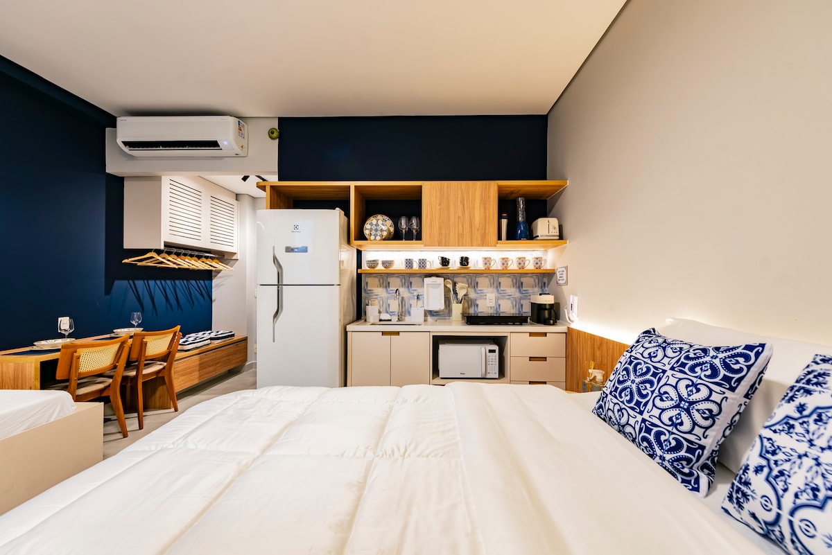 El CatorzeVinteUm es nuestro encantador estudio, ¡perfecto para hasta 5 personas! Situado a solo una calle de la playa de Itararé, en São Vicente/SP, en el piso 14 con una increíble vista al mar 🌊 y fácil acceso al VLT🚋. 🎮 Entretenimiento con XBOX, TV de 50" (Prime, Netflix), juegos de cartas, Uno y dominó. 🍷 Bodega con 18 etiquetas. ☕ Dolce Gusto® (cápsulas no incluidas). 🐶 Se admiten mascotas. Servicio de conserjería🏢 24 horas, cerradura digital y lavandería. 🍳 Cocina totalmente equipada. ¡Mucha comodidad junto al mar!
