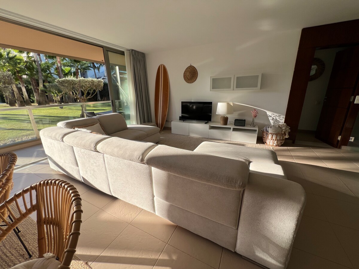 spacieux, élégant ,tout confort, vue piscines et parc paysagé. 1 chambre lit double matelas de qualité, plus, dans le salon, 1 lit gigogne proposant 2 couchages 1 adulte (ou 1 couchage 2 adultes), avec matelas de qualité + 1 lit d'appoint. La résidence à 500m de la plage au coeur d'1 site d'une beauté unique. le très beau golf 18 trous , plusieurs piscines. Spa, tennis, salle de sports,golf : payants 1 piscine chauffée, palacio dos congressos, entrée 10€/personne. WIFI 1000 Mbps.
