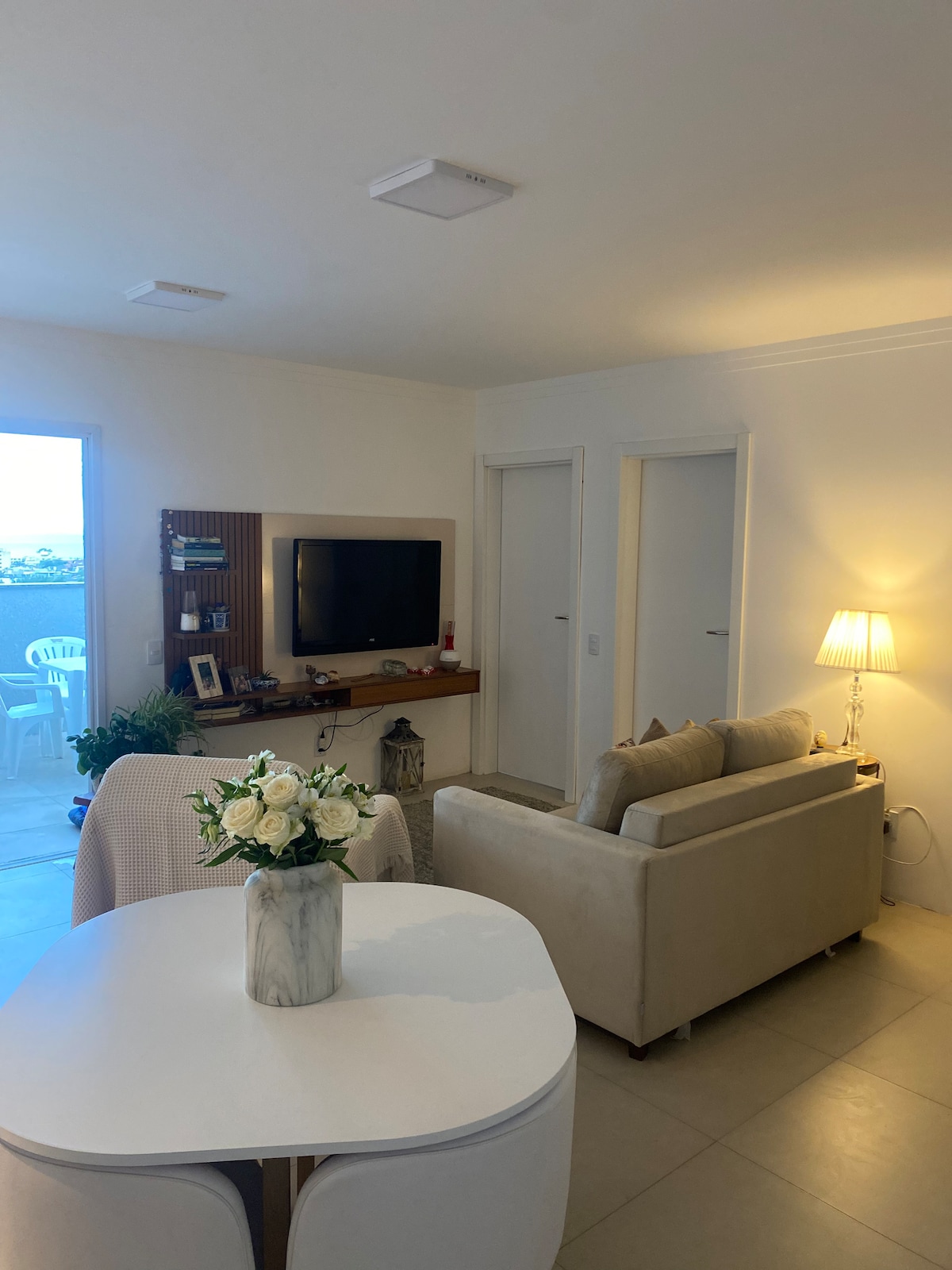 Apartamento no sexto andar com ótima estrutura, possui dois quartos, sendo uma suíte, banheiro social (possui ducha a gás nos dois banheiros), cozinha, churrasqueira, lavanderia e ar condicionado somente na sala que gela muito bem todo o apto. Possui vaga dupla de garagem. O Estacionamento do prédio é amplo sendo muito fácil estacionar. Há menos de 5 minutos de carro da Praia da Cal, Praia da Guarita, Praia Grande e Centro.