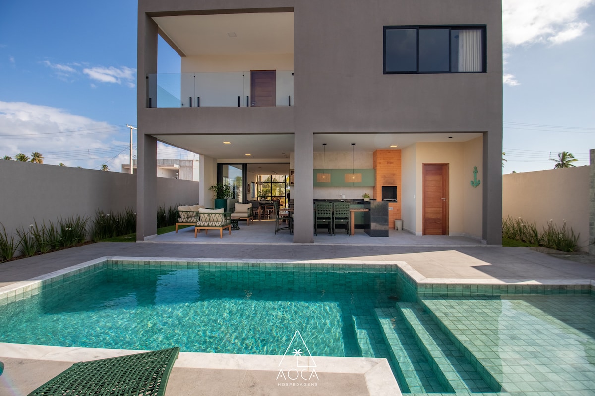 ¡Inspírese con familiares y amigos en este lugar lleno de estilo y diseño! ¡Nuestra casa está equipada y completa para recibir a sus invitados y hacer de su estancia una experiencia inolvidable! Nuestra piscina climatizada tiene una zona poco profunda perfecta para los niños e iluminación nocturna. A 200 metros de la paradisíaca playa de Tatuamunha y también del río, hermoso escenario del Pez Boi - delicioso desayuno, servido todos los días, - limpieza diaria