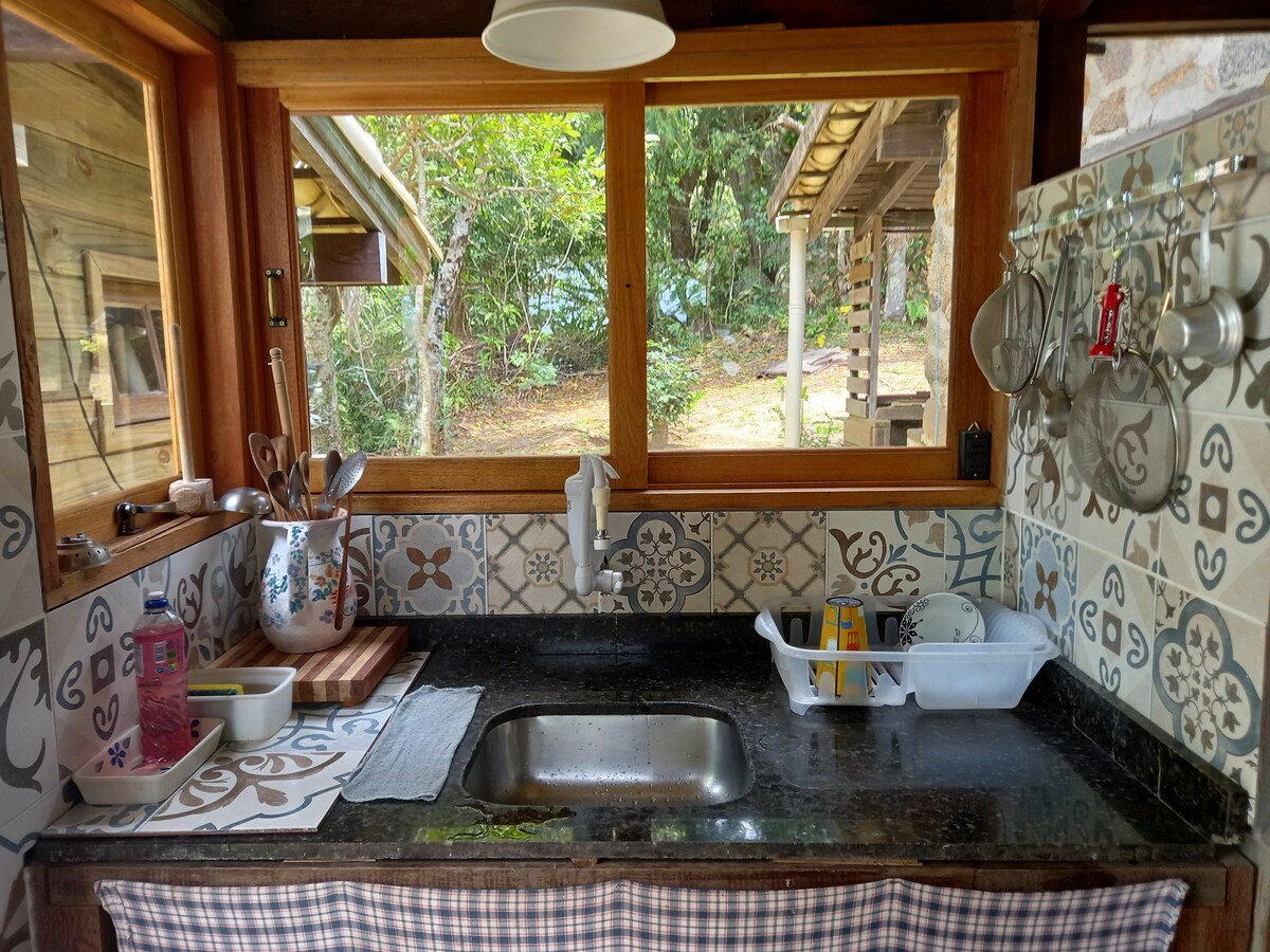 Una cabaña rústica frente a la laguna Conceição, rodeada por el bosque nativo, con un arroyo de agua cristalina para bañarse, un jacuzzi climatizado con agua de manantial, fuego sagrado para calentar las noches y un increíble jardín para tomar el sol o meditar. Es un chalet de gran comodidad y también privacidad. Ideal para parejas que quieran celebrar el amor, amigos que quieran reunirse y disfrutar de la naturaleza, familias que quieran paz y tranquilidad, o escritores y artistas que estén buscando inspiración.