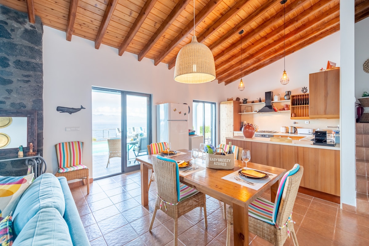 El paraíso en la tierra. La vista más hermosa del mundo. Maravillosa casa construida desde cero recientemente, ubicada en Prainha de Cima (parte norte de la isla de Pico) con impresionantes vistas sobre el canal y la isla de São Jorge. Compuesto por 2 pisos con 2 ventanas panorámicas, puede alojar a 4 personas, 2 en el dormitorio y 2 en la sala de estar en un sofá cama. Tiene 2 baños completos. ¡Realmente vale la pena despertar para ver salir el sol!