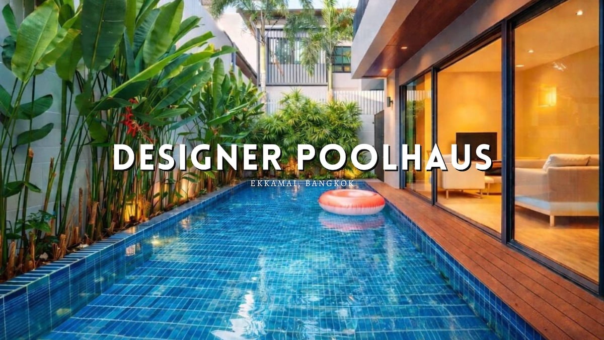 Step through the gates and leave Bangkok behind, your own 440 sqm villa with private pool awaits in Thonglor, 7 min from the BTS. 4 bedrooms, 5 bathrooms, kitchen, dining for 12, two living areas, and a tropical poolside garden with outdoor shower. Every upstairs bedroom has an en-suite, smart TV, and workspace. Perfect for families, friend groups, or remote-work stays. Superhosts · 600+ reviews · 4.95★ · 7 years hosting