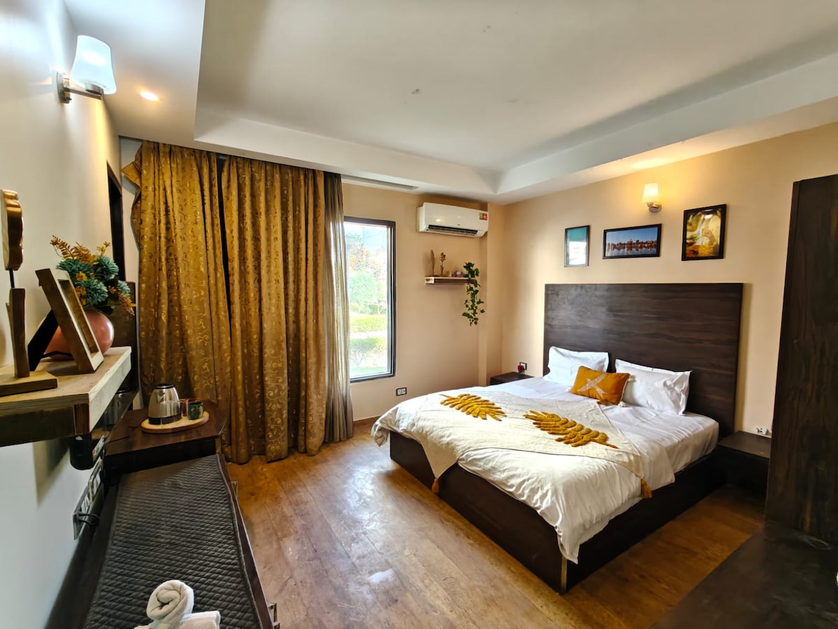 Welcome to Boho Aura, a warm, boho-inspired retreat in the heart of Vrindavan, just minutes from Prem Mandir and ISKCON. Step outside the building and you’ll find local markets right downstairs, making daily essentials easy to access. Thoughtfully designed for relaxation, it’s a space for your to unwind after temple visits and feel truly at home. Note - Local IDs are not accepted. Please text us if you have any doubts.