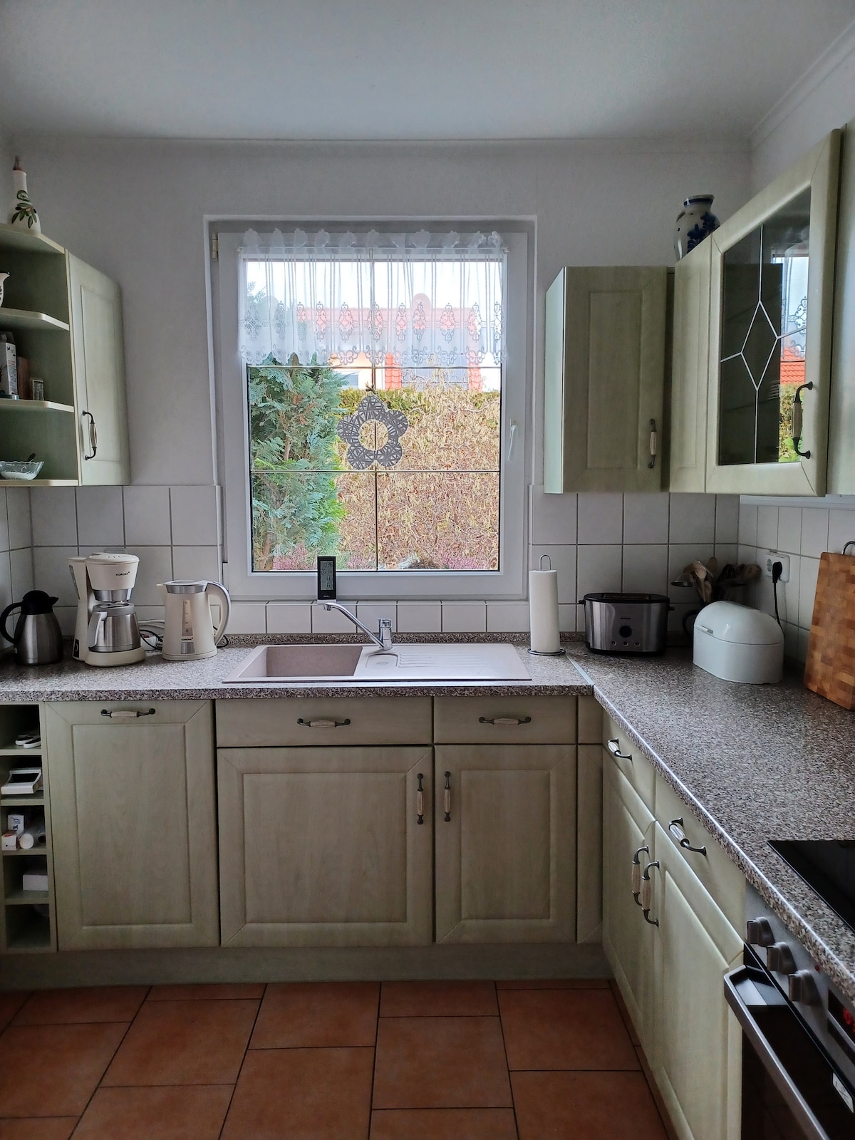 Die Ferienwohnung mit eigenem Eingang wurde hochwertig ausgestattet. Fussbodenheizung mit Eichendielen, Kamin, hochwertige Badausstattung (Wanne + Dusche). Die Einbauküche mit Geschirrspüler ist sehr gut ausgestattet und hat auch eine Nespresso Kapselmaschine zu bieten. Großzügiges Panoramafenster und Terasse Richtung Süd-West mit Blick auf das Trapenschutzgebiet laden zum Seele baumeln lassen ein. Genießen Sie die Entschleunigung vom Alltag - willkommen im Leben!