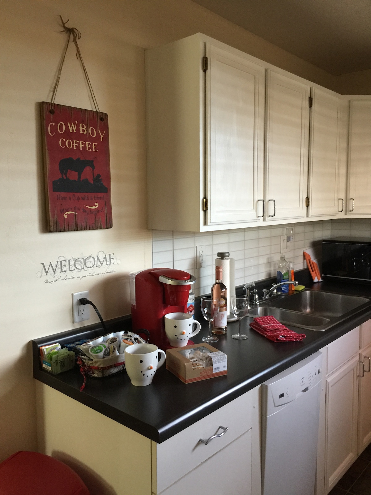 This is a separate & private suite, with free parking for 1 vehicle & a private entrance. Walking distance to Courthouse/Whiskey Row, about 1.25 miles & Prescott Resort 1 miles. 4.1 miles to Watson lake. Equipped with a full size refrigerator, induction cooktops, oven/air frier, dishwasher, microwave, dinnerware, drinkware & utensils. Also provided are kitchen, and bed & bath linens. Additional pillows, blankets, towels, pack-n-play, iron, picnic basket & more available on request