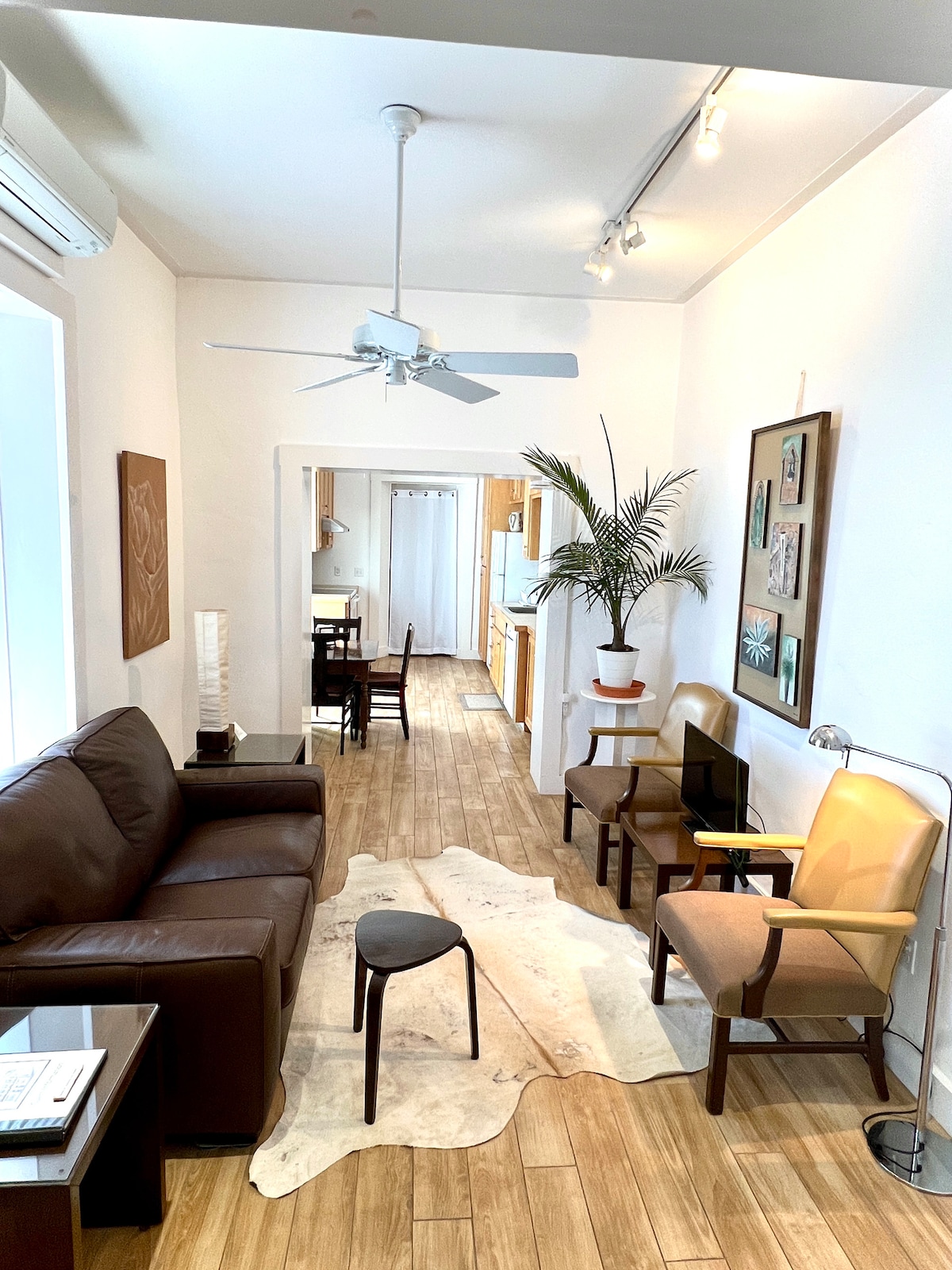 Nuestro hermoso complejo en el borde de la ciudad tiene dos edificios: la parte delantera es para vivir y comer, y la parte trasera es para dormir. Hay un corto paseo entre los dos a través de un jardín desértico floreciente y una pérgola cubierta de enredaderas. Sube las escaleras de caracol de la casa delantera hasta la azotea para disfrutar de unas vistas inigualables al atardecer, al amanecer y a la Vía Láctea. Estamos a 5 minutos del centro de la ciudad. Se admiten perros con aprobación previa y una tarifa plana de 50 USD, no más de un perro.