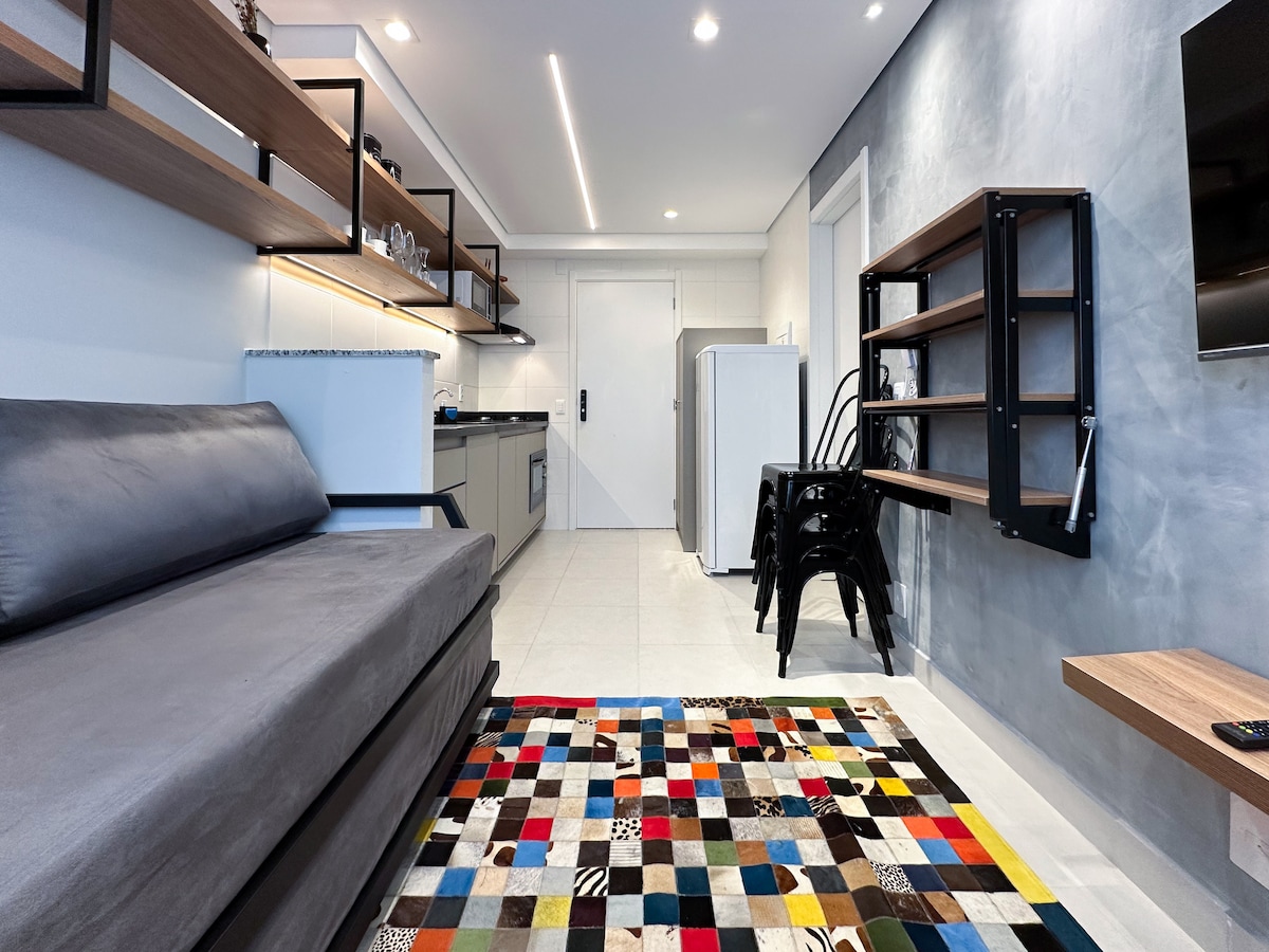 Alójese en el piso 30 del Edificio Copan con una de las vistas más espectaculares del atardecer. Este estudio totalmente equipado tiene todo lo necesario para una estancia inolvidable en el edificio residencial más famoso de Brasil. Ubicado sobre una de las obras maestras del arquitecto Oscar Niemeyer, este apartamento fue completamente remodelado en un proyecto de la arquitecta Teresa Mascaro y ahora también forma parte del proyecto AirBnB en Copan.