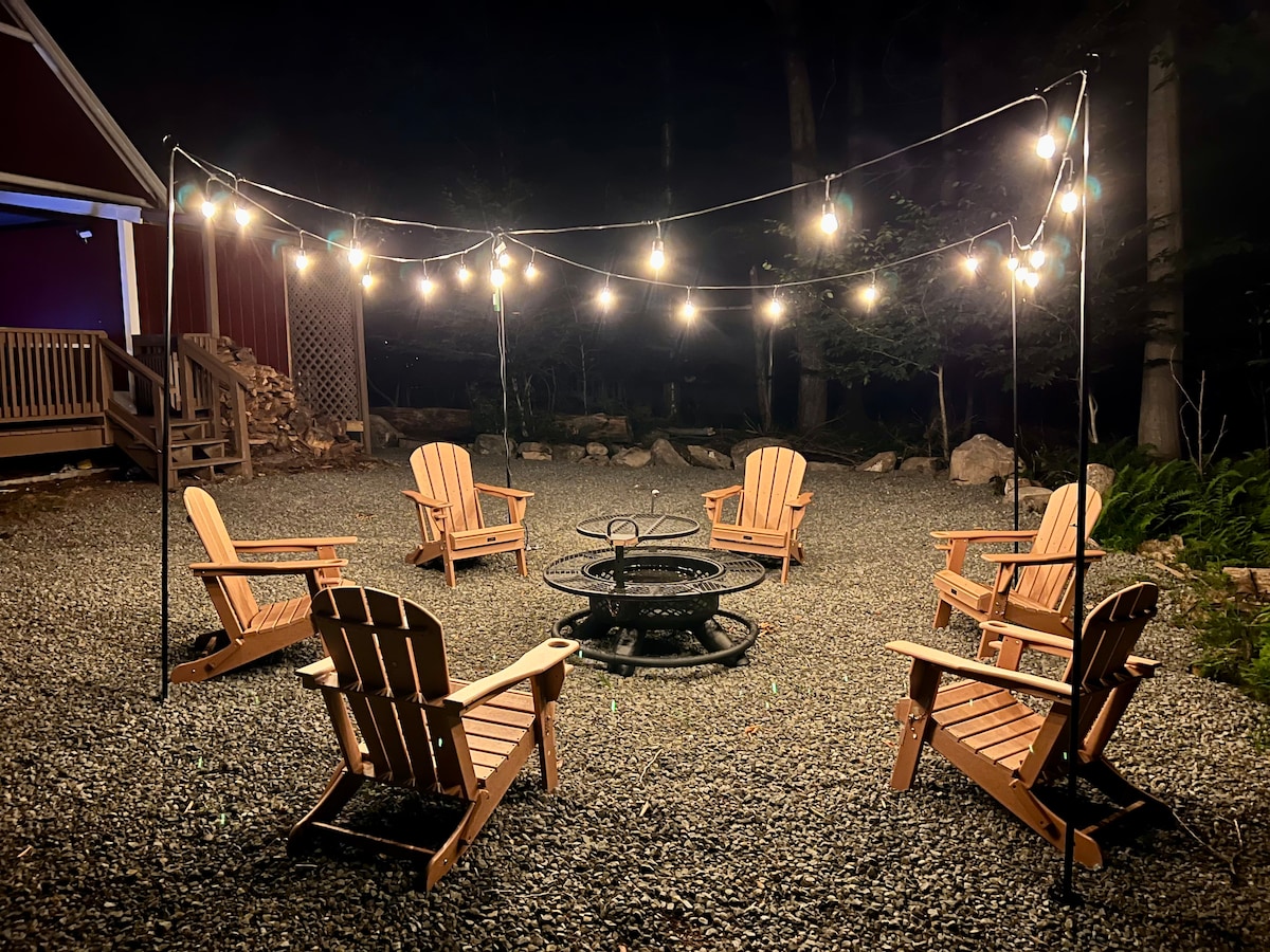 Déjate cautivar por el ambiente acogedor que combina a la perfección la esencia nostálgica de un campamento de la vieja escuela con la sofisticación elegante del diseño contemporáneo. A medida que te acercas, el fuego te invita a reunirte alrededor y disfrutar de su tranquilidad. Imagina hundirte en el burbujeante jacuzzi, disfrutar de una bebida mientras contemplas el cielo estrellado y dejas que el estrés de la vida cotidiana se desvanezca. Este es el tipo de experiencia rejuvenecedora que te espera en este oasis de Pocono.