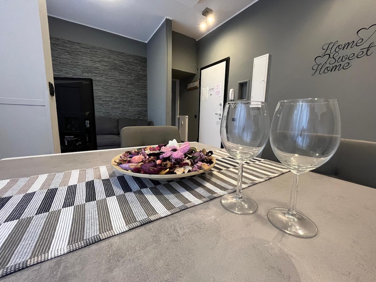 A 2 minuti dall'autostrada, il bus e la stazione dei treni sotto casa raggiungibili a piedi portano direttamente all’aeroporto, Milano e Svizzera. Parcheggio gratuito. Loft appena ristrutturato, completo di tutto con arredo di design. La stanza principale è un open space con una cucina a penisola e un moderno soggiorno che affaccia su un ampio terrazzo con tavolo per cene e aperitivo con bbq. Nella stanza da letto c’è un letto matrimoniale, una sedia-letto e terrazzo. AC in ogni stanza.