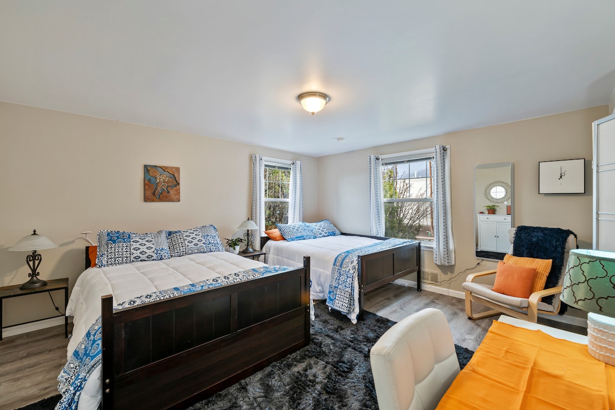 Inspirada en la hermosa arquitectura y el arte de Turquía, esta suite es una acogedora suite pequeña en el SÓTANO de nuestro hermoso edificio. SÓTANO (6 escalones hacia abajo) Cocina totalmente equipada Internet de fibra. Aproximadamente 450 pies cuadrados. Lavandería con monedas en el edificio Aparcamiento fuera de la vía pública Secador de pelo/cafetera/plancha. 1 cama tamaño queen, 1 cama completa * ¡NO hay puertas en los dormitorios! Abierto a la sala de estar. Si deseas una limpieza impecable, muebles de la mejor calidad y servicio personal, ¡Aspenwood Manor estará encantado de hospedarte!