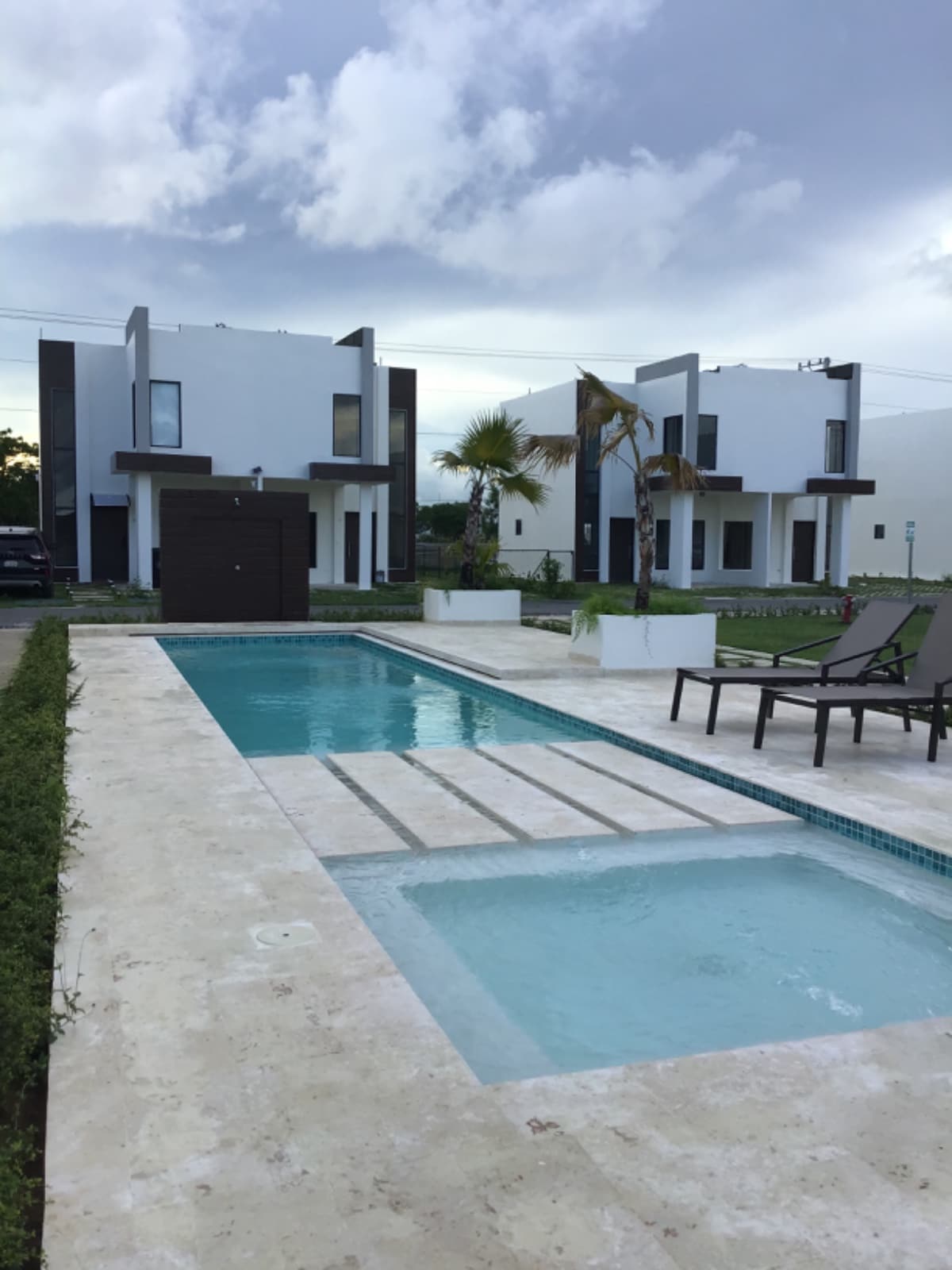 Moderna y espaciosa villa para 6 personas cerca de la playa, centros de entretenimiento, supermercados y licorerías. Qué ofrecemos: 3 dormitorios con sus propios baños y grandes camas dobles. Amplio salón con sofá cama. Smart TV con todas las aplicaciones de streaming en cada habitación. Azotea tipo solárium. Patio equipado con zona de barbacoa. Estacionamiento privado para 2 vehículos. Piscina privada y gimnasio en la zona residencial. A minutos de las playas de Bávaro, Cocobongo, Imagine Disco, supermercados, cines y licorerías.