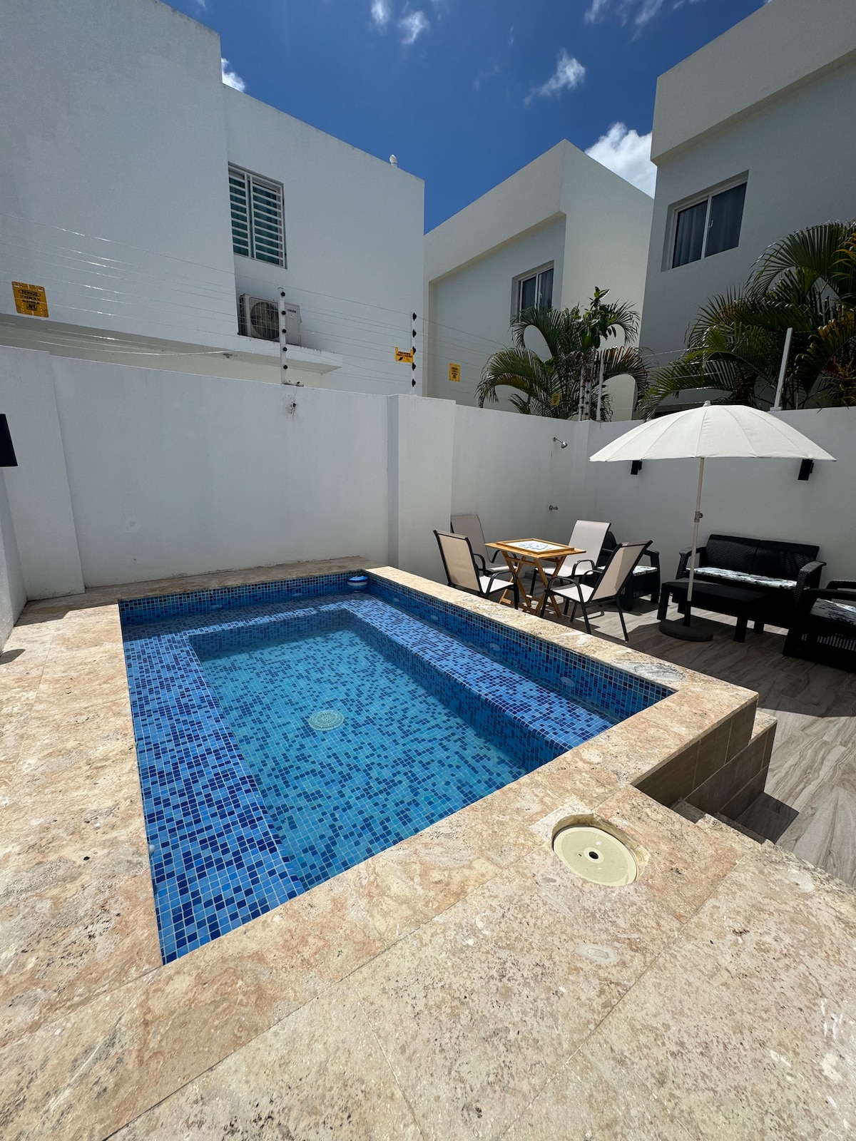 Disfruta de una acogedora estancia en esta casa de 3 dormitorios y 3 baños en Downtown Punta Cana. Con aire acondicionado, Wi-Fi de alta velocidad, 2 Smart TVs y una terraza privada con Picuzzi (no hot), ofrece el equilibrio perfecto entre confort y conveniencia. La cocina equipada, el estacionamiento seguro, la seguridad 24/7 y la piscina comunitaria garantizan una experiencia sin preocupaciones. A 3 minutos de Downtown Punta Cana y COCO BONGO, 12 minutos del aeropuerto y 15 minutos de la playa