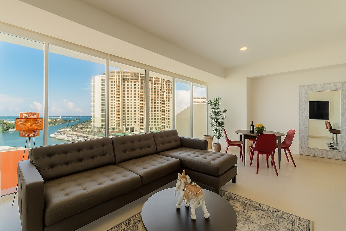 Vive la experiencia de hospedarte en un lujoso departamento de 3 recámaras en Cancún, con espectaculares vistas al parque y la Zona Hotelera. Ideal para familias, grupos o viajes de trabajo, combina elegancia y confort con entretenimiento. Disfruta de una amplia sala con TV de 75” y PlayStation 5, comedor para 6 personas, cocina moderna con barra desayunadora, lavadora y secadora, estacionamiento para 2 autos y una hermosa alberca compartida.