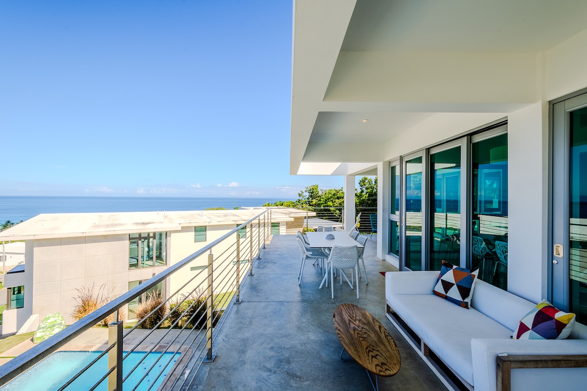 ¡Bienvenidos a Ojalá! Con impresionantes vistas desde prácticamente todas las habitaciones, Ojalá se encuentra en el muy deseable barrio de Puntas, a poca distancia a pie de muchas de las playas y restaurantes de fama mundial de Rincón. Aventúrate dentro de este nuevo y moderno oasis privado donde encontrarás un diseño, decoración y servicios de lujo que harán de este un retiro único en la vida. Ojalá se encuentra a pocos kilómetros del centro de Rincón. Solo tienes que seguir la «Carretera de la felicidad».