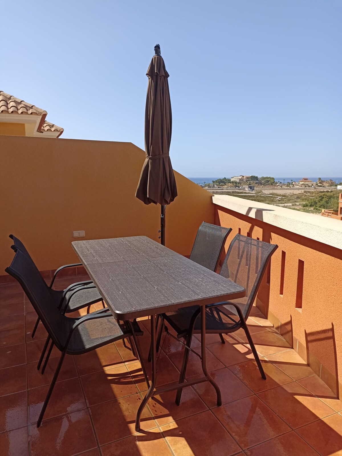 Lo mejor de este apartamento es la vista de 180 grados al mar desde el apartamento. Podrás desayunar mirando al mar y podrás oír las olas mientras duermes. Acogedor y cómodo con todo lo que puedas necesitar para tener unas vacaciones de lujo. Gracias a nuestro Wifi, podrás teletrabajar mirando al mar. Hemos instalado recientemente toldos eléctricos, si sales de casa y se levanta viento, se recogerá automáticamente.