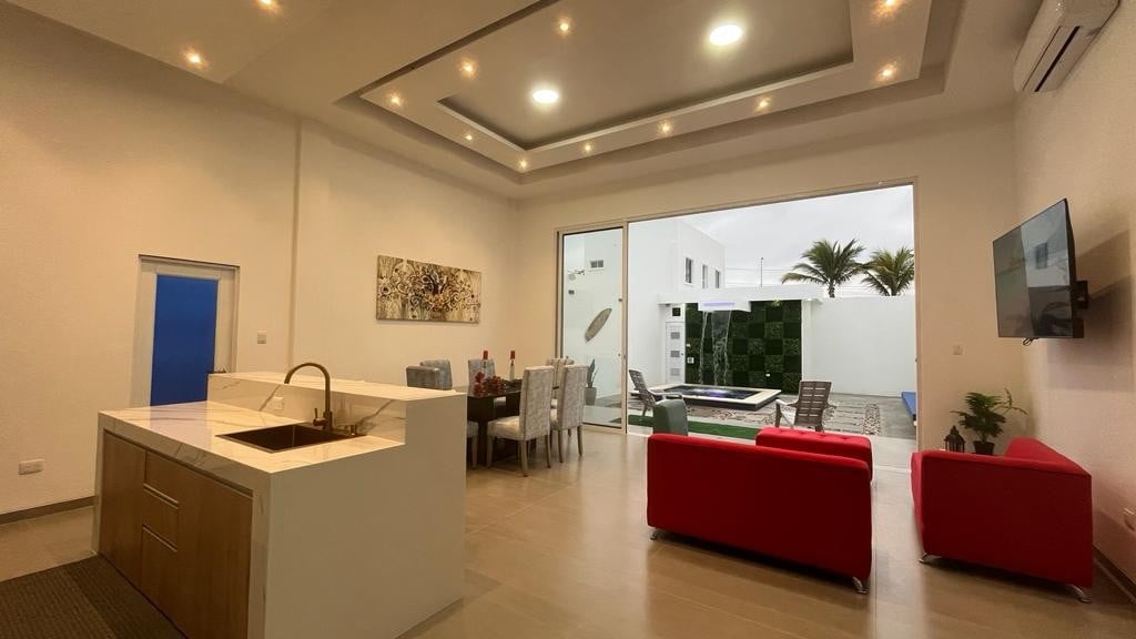Cómoda casa de 3 pisos con acceso directo a la playa y vista panorámica al mar. Perfecta para familias o grupos, ofrece: 🛏️ 5 dormitorios con A/C. | Dormitorios 4 y 5 conectados por una puerta corrediza y comparten un A/C principal. Disponible una cuna para tu bebé. 🍽️ Cocina full equipada | 5 baños completos| 🛋️ Múltiples salas de estar ⛱️ Carpa de playa incluida. Zona bbq y piscina privada. 🚫NO es PET friendly 👥 Capacidad máxima: 10 personas (incluidos niños).